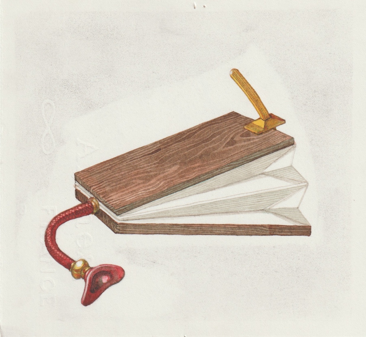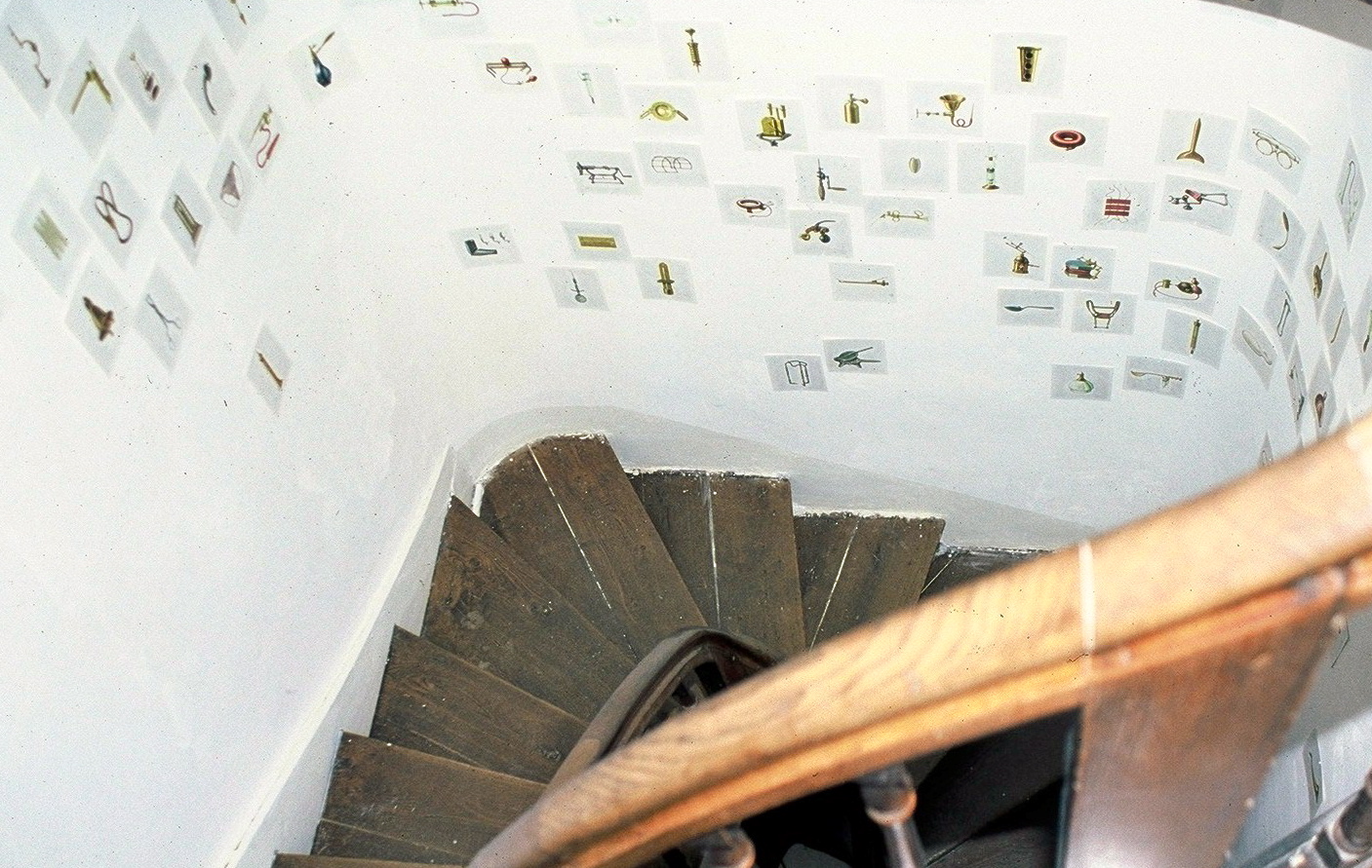 A. Biet montant un escalier installation présentée à La Cage sur une invitation de Christelle Vallet