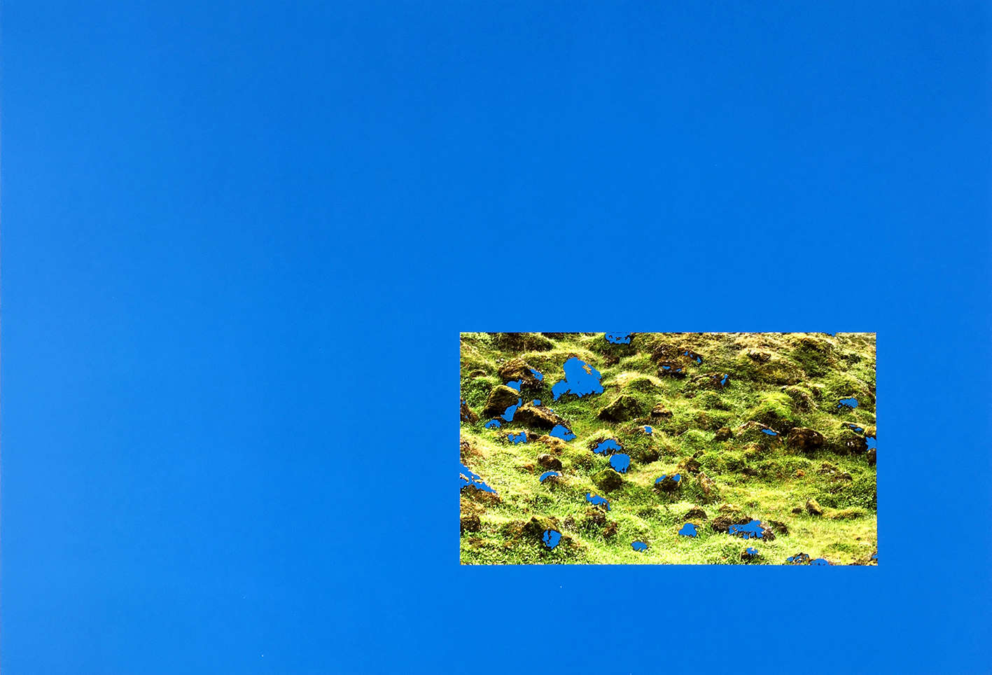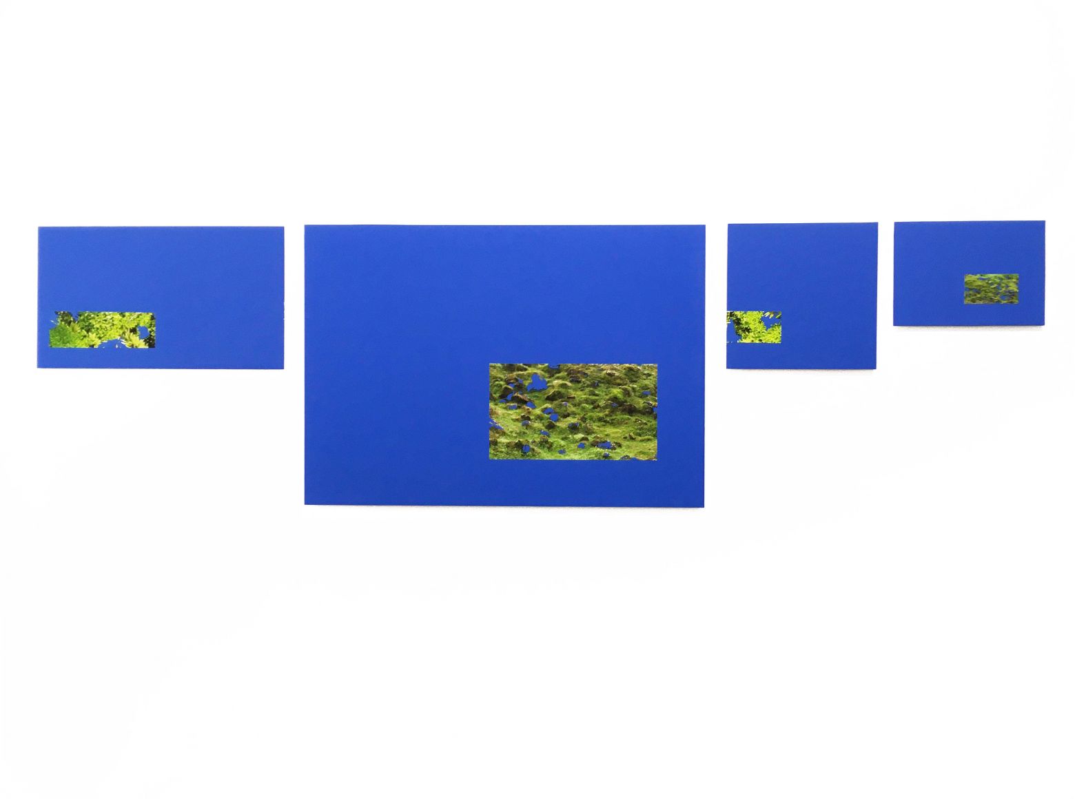 Support aluminium peint en bleu incrustation, collage photo + bleu incrustation