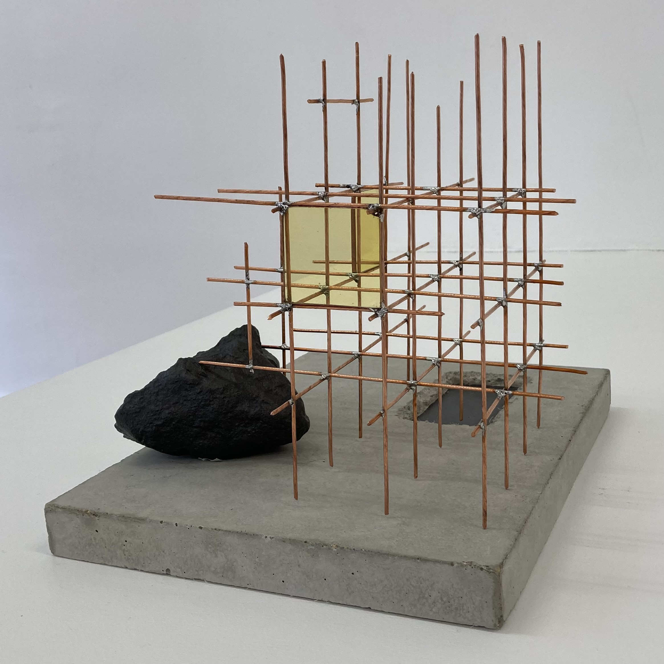 Béton, peinture vert incrustation, fil de cuivre soudé