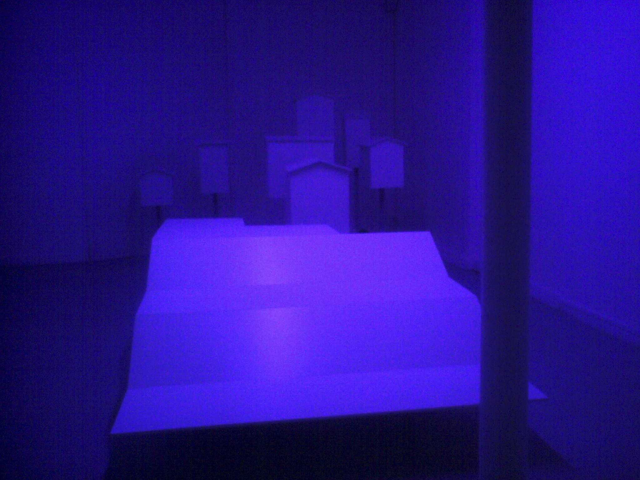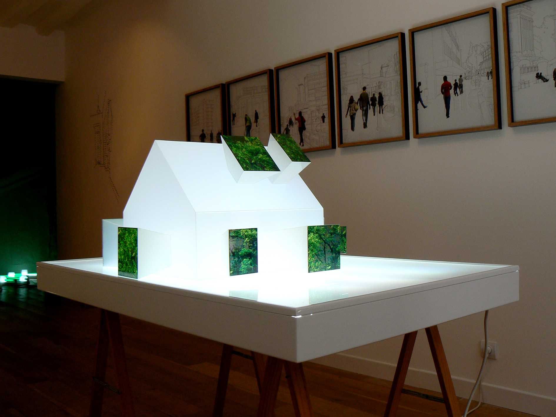 Maquette de maison standard, ouvertures extrudées, images duratrans, lopin, plexiglas diffusant, système d’éclairage sous la maquette