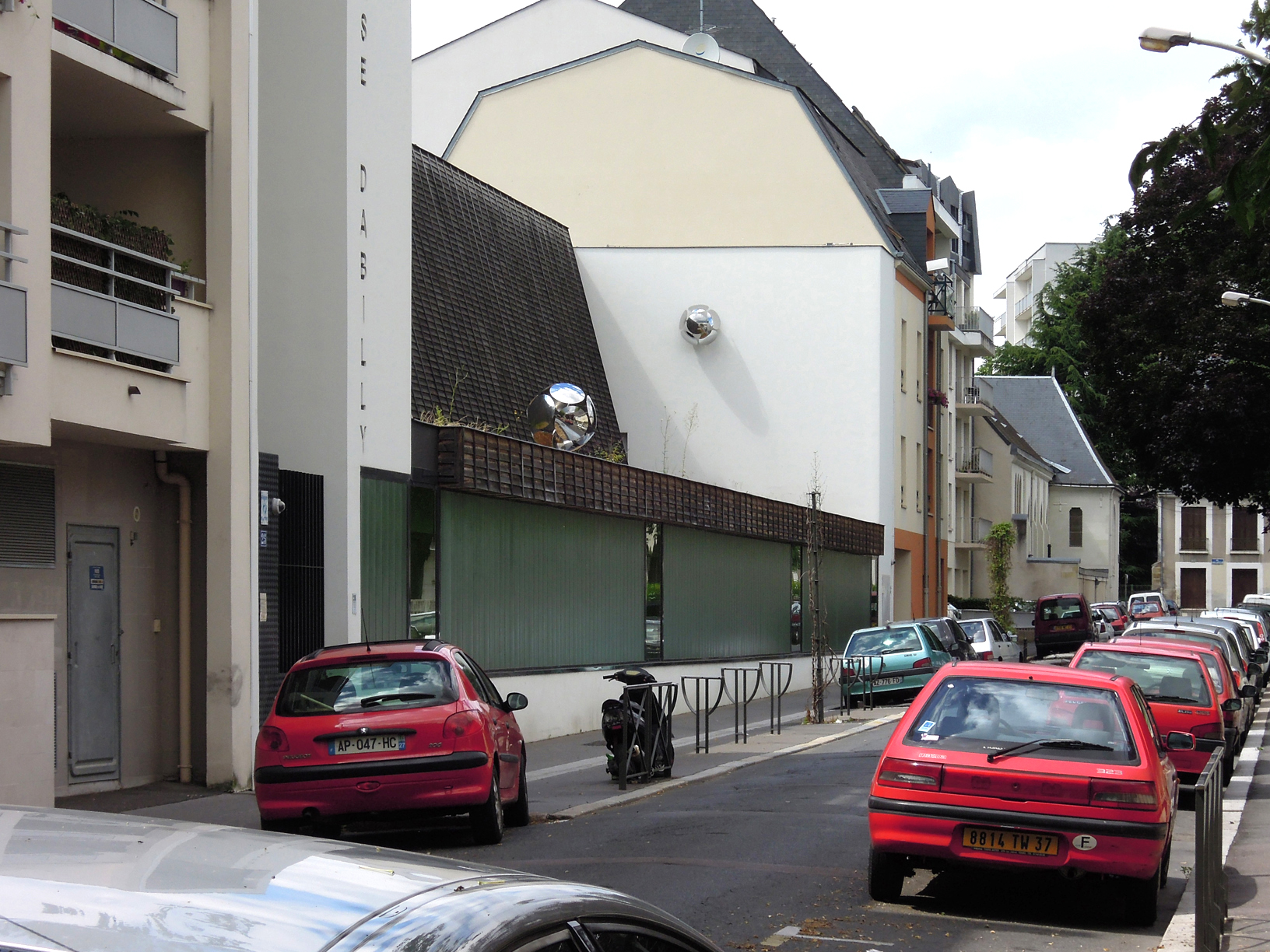 C’est là que prennent place les trois modules composés de miroirs inox convexes. Chaque élément délimite une forme sphérique ou qui renvoie à la sphère, pouvant évoquer la balle ou le ballon, la bulle, l’univers floral ou celui de la fiction (objet métallique étrange). Désignée sous le nom de « satellite » cette réalisation, par la nature de ses matériaux, absorbe la lumière et les éléments alentours, fixes ou en mouvement, pour les restituer au regard des passants. De ce simple fait, les modules s’animent. Ils tracent une trajectoire dans l’espace et viennent tout à la fois perturber, comme des intrus, le paysage et s’y inscrire parfaitement.