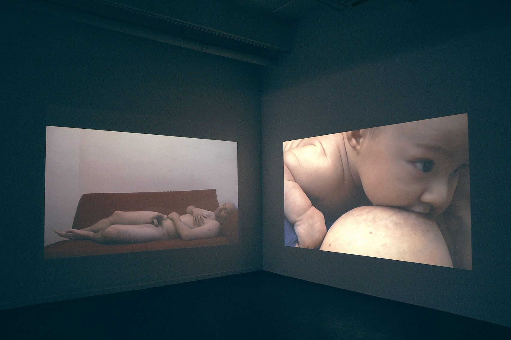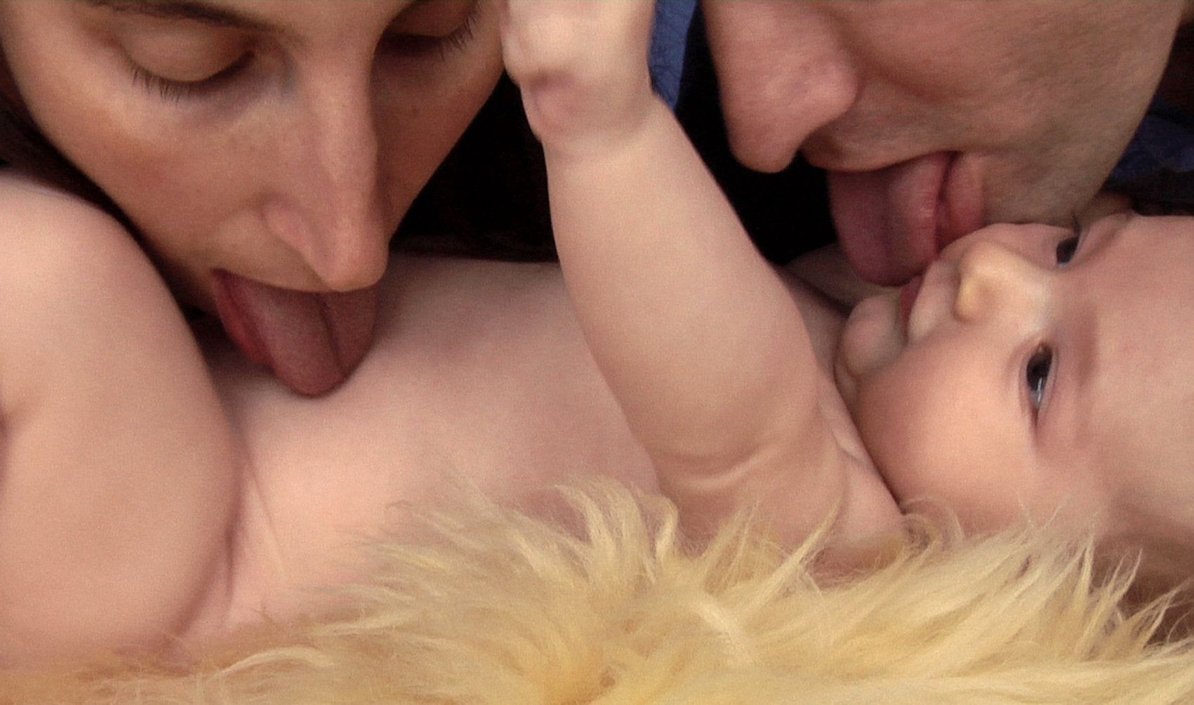De l'autre, l'accueil : un nouveau-né tête goulument dans les bras de sa mère, puis est léché par ses deux parents. Cette scène évoque un geste primordial qui, chez les animaux, permet au petit de vivre, l'imprègnant de l'odeur de sa mère et stimulant ses fonctions vitales. L'enfant est léché dans sa globalité, recouvert de l'empreinte de ses parents et en même temps reconnu dans son individualité, avec son intégrité propre. A l'inverse de le maintenir contre soi dans une ultime tentative fusionnelle, l'enfant est ainsi accueilli dans le monde, encouragé à y faire sa place avec la protection de ses parents.