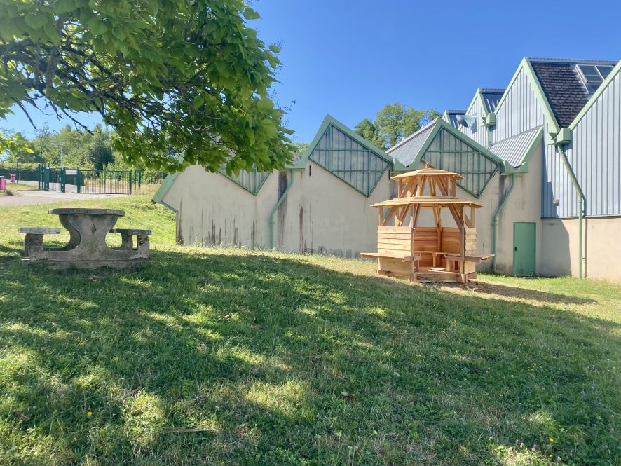 À notre tour! est une sculpture-refuge en bois installée sur la pelouse du Lycée des Métiers François Mitterrand. La sculpture est l’aboutissement d’un projet de résidence mené sur deux années avec les élèves de la section Arts du bois.