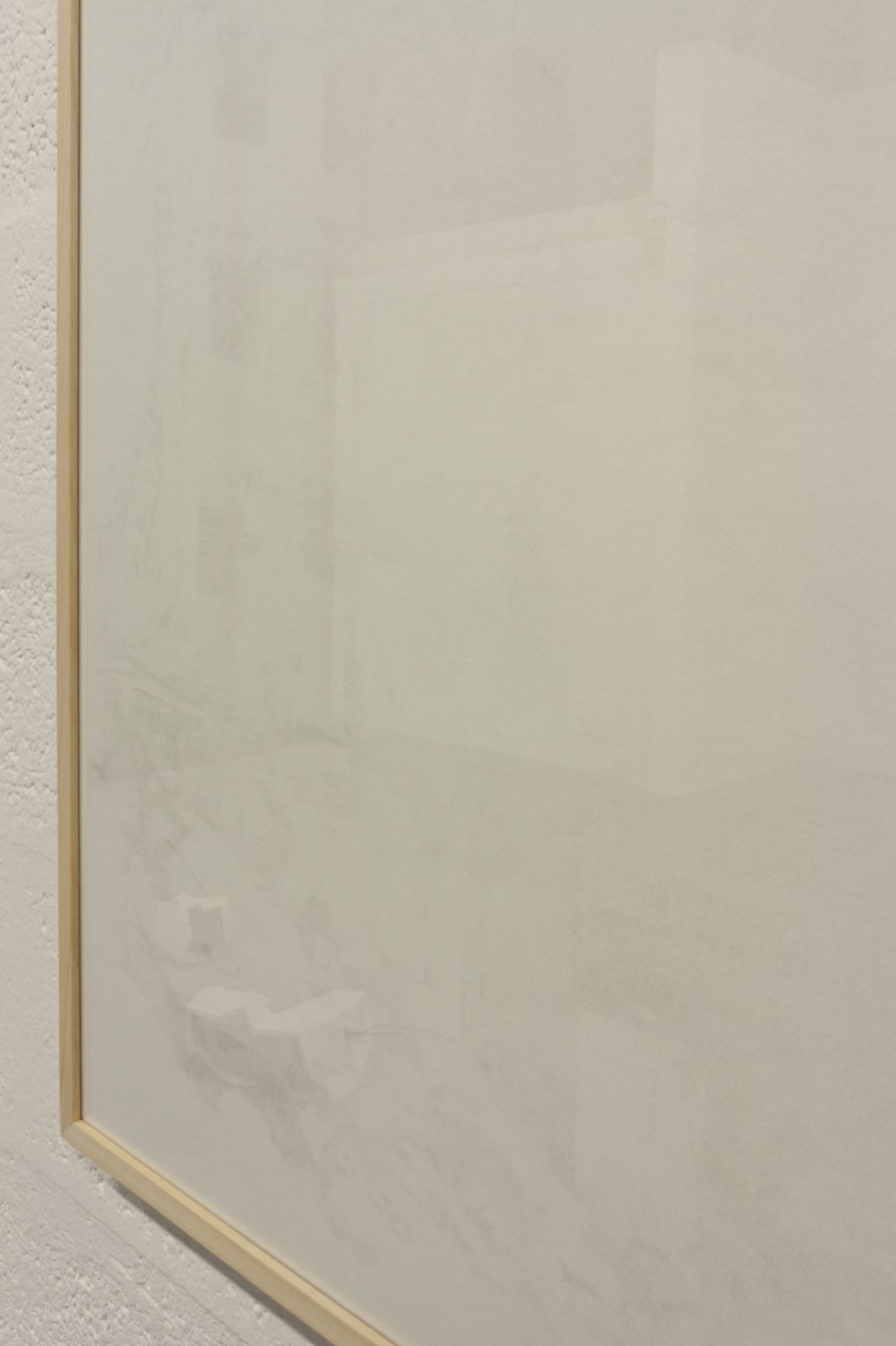 Toutes les œuvres semblent ainsi hésiter entre apparition et disparition. Le filet s’intègre dans le lieu et son histoire, les rebuts se confondent avec le blanc des mûrs, révélés dans le détail par ces œuvres discrètes, et les dessins peinent à se faire voir ou à se faire oublier. Elles jouent toutes avec une certaine indétermination de leur statut : peinture ? Sculpture ? Dessin ? Gravure ? Architecture ?
