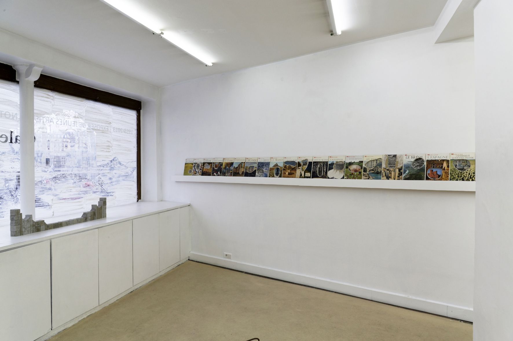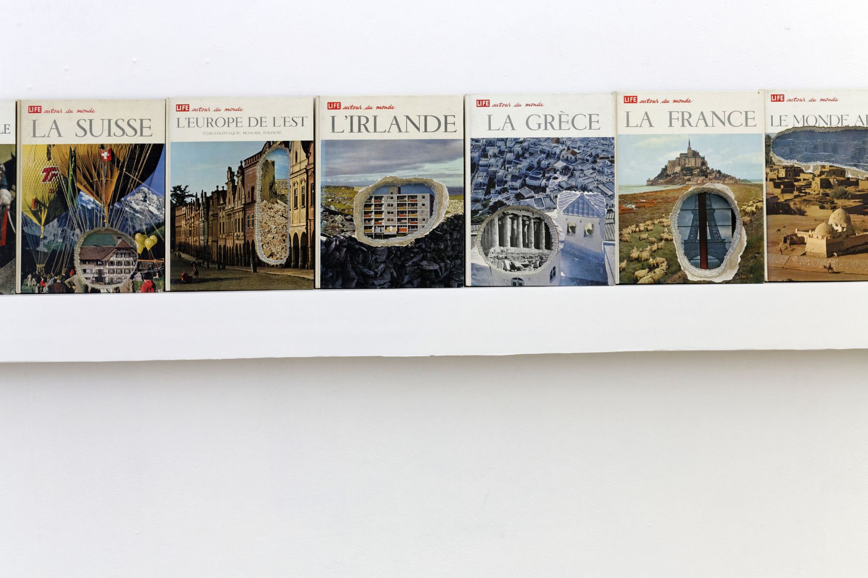 Archéologie livresque réalisée dans l'encyclopédie "Life autour du monde" (Éditions Time Life / 30 volumes). Les livres sont fouillés puis creusés avec une gouge. Les creux réalisés avec l'outil, laissent apparaître des images comportant de l'architecture et rend visible l'empilement de l'histoire au fil des pages, comme un écho à la stratification terrestre. L'ensemble est installé sur une console greffée au mur et propose une lecture horizontale de l'architecture mondiale dans tous ses états.