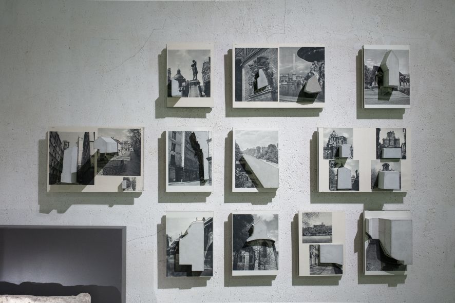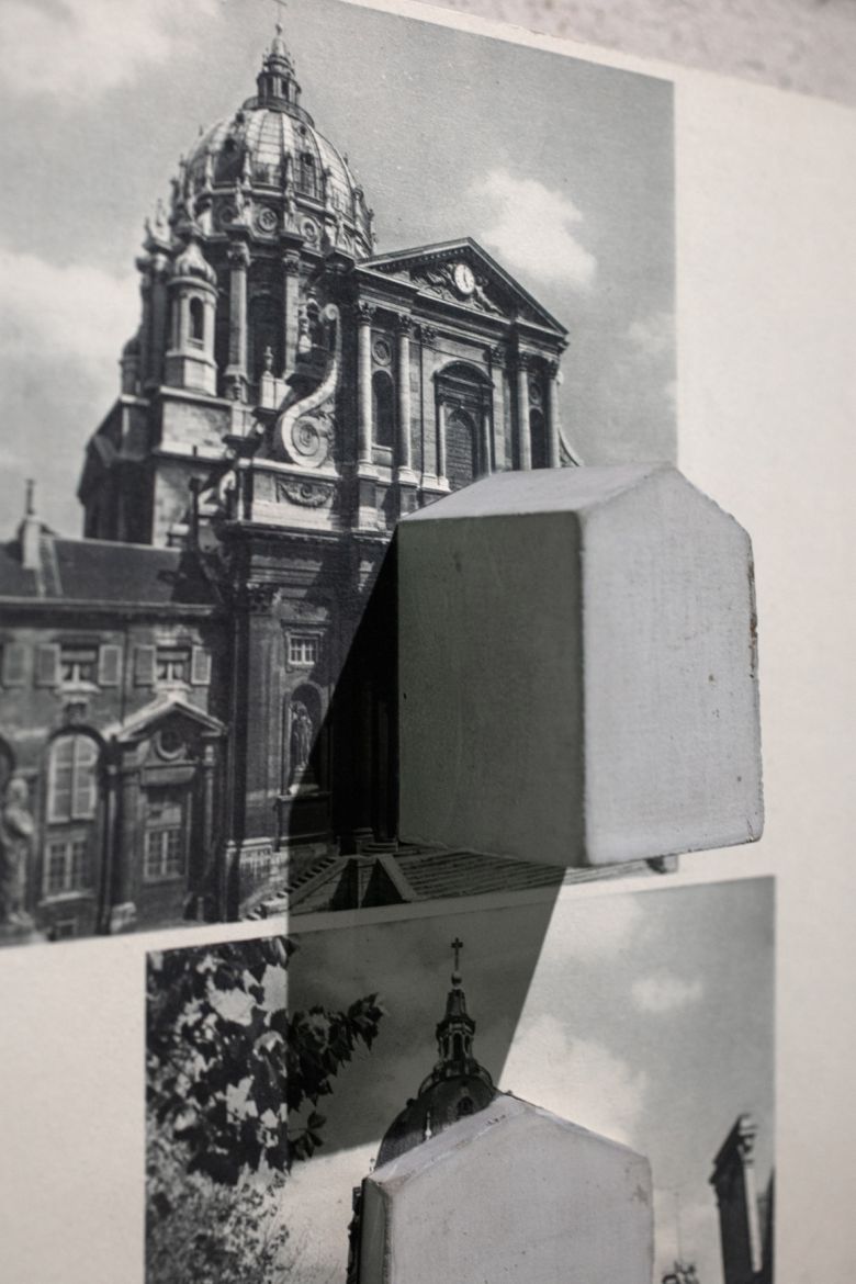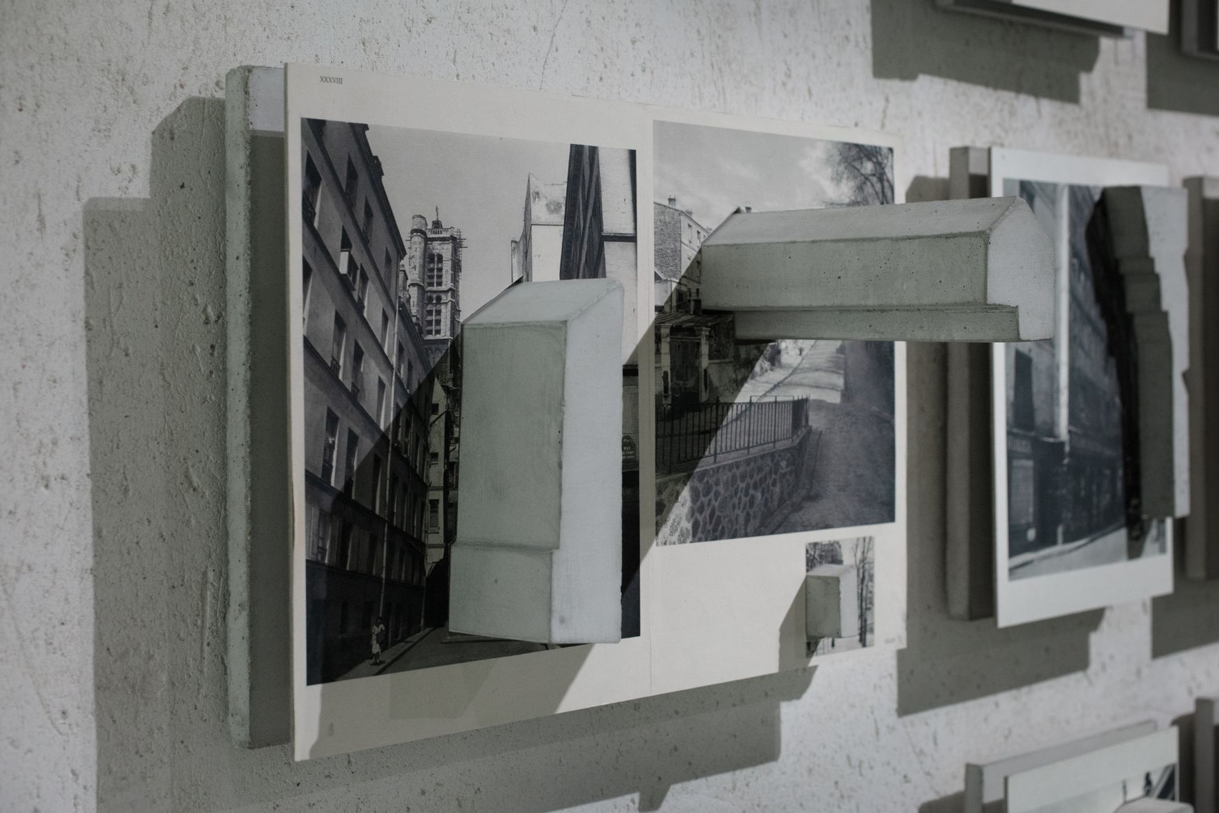 Des document photographiques sont découpés puis extraits pour laisser place à un vide. Ce vide est ensuite comblé par un volume en ciment qui épouse la forme architecturale originelle et augmente l’image par la matière. Comme une forme de « réalité augmentée », les volumes nous font sortir du plan et interrogent notre perception de la réalité matérielle.
