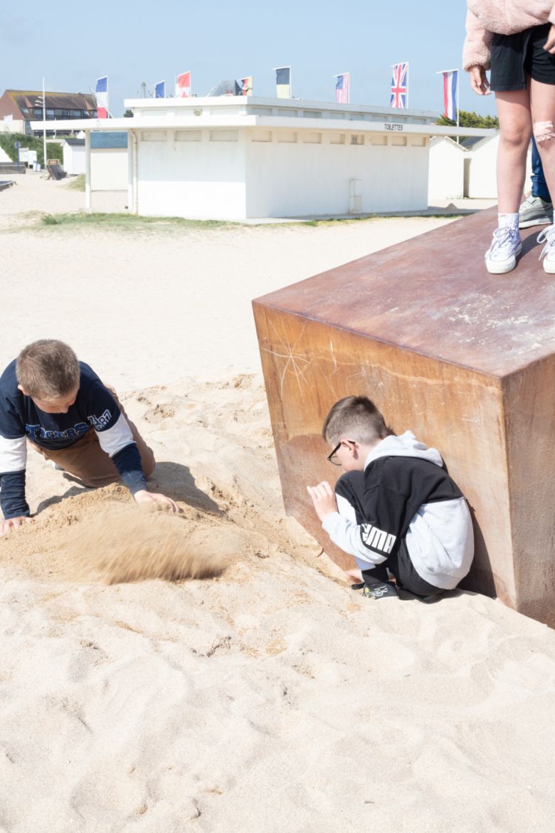 Tobrouk est une sculpture monolithique qui modélise l’espace intérieur d’un petit bunker individuel. Recouverte d’une montagne de sable sur la plage de Ouistreham Riva-Bella, l’œuvre a d’abord été invisible. Durant une année, la découverte de la sculpture a pris la forme d’une mission archéologique participative. Telle une « bunker archéologie », terme utilisé par Paul Virilio, l’artiste a proposé au public de vivre l’œuvre selon la posture de l’explorateur en faisant référence à son expérience intime au contact des vestiges du Mur de l’Atlantique « abandonnés aux jeux des enfants »¹.