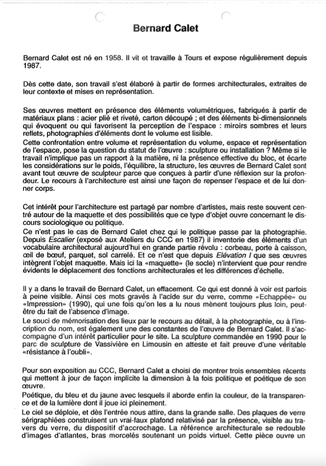 Vues de l'exposition personnelle au Centre de Création Contemporaine, CCC, Tours, 1994
