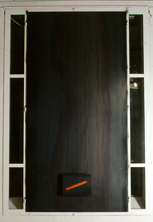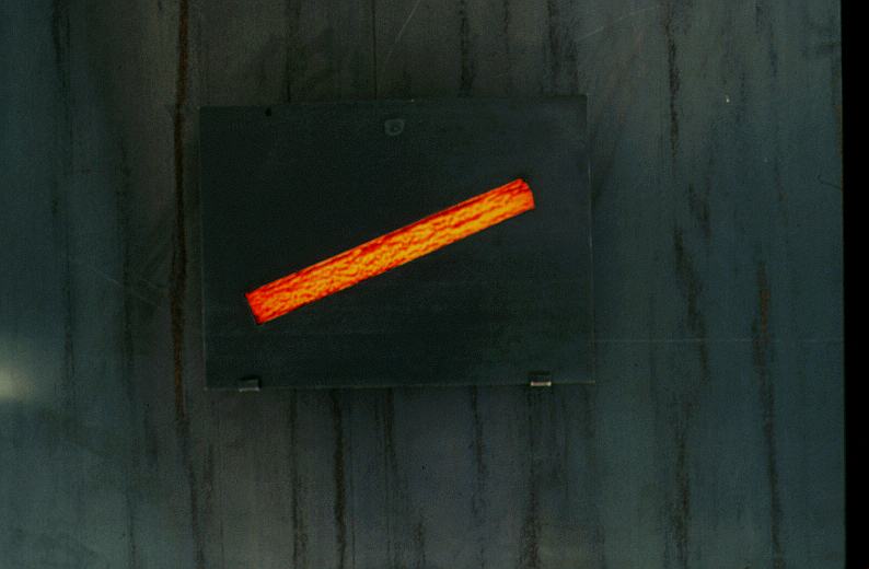 Feuilles d'acier soudées à l'emplacement des fenêtres, cibachromes de lopins incandescents, chaque élément/feuille : 300 x 150 x 1,4 cm