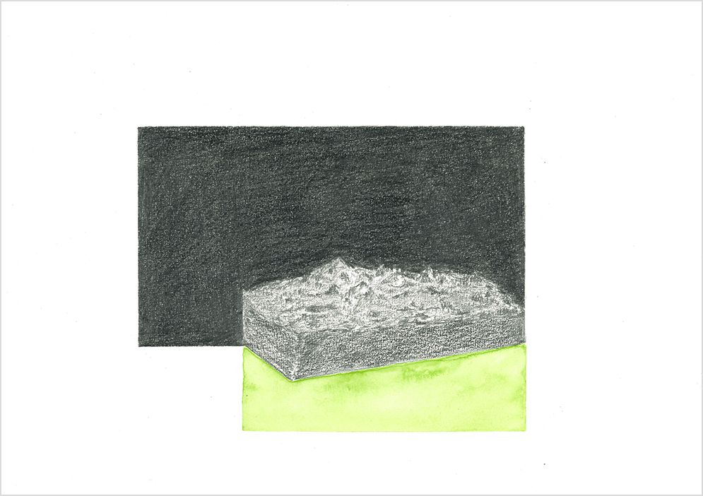 Graphite, aquarelle et feuille de cuivre, 21,5 x 24 cm