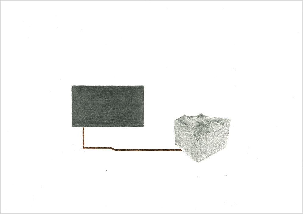 Graphite, bleu incrustation et feuille de cuivre, 29,7 x 42 cm