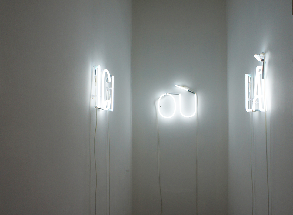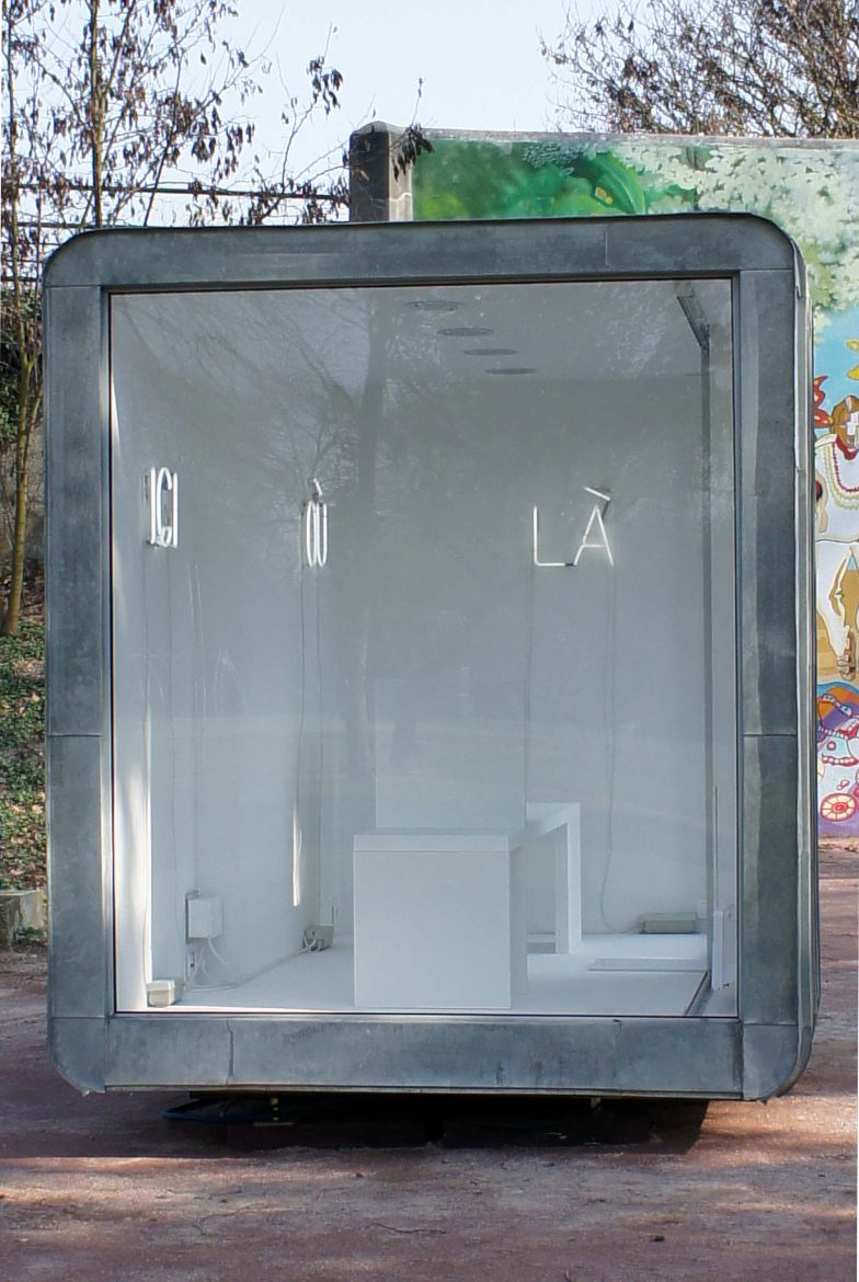 Réflexions, mobilités autant de déplacements –métaphores – (en grecque)  que chacun pourra, s’il le veut engager. Elles seront redoublées par trois signes lumières que sont les néons ICI OÙ LÀ.