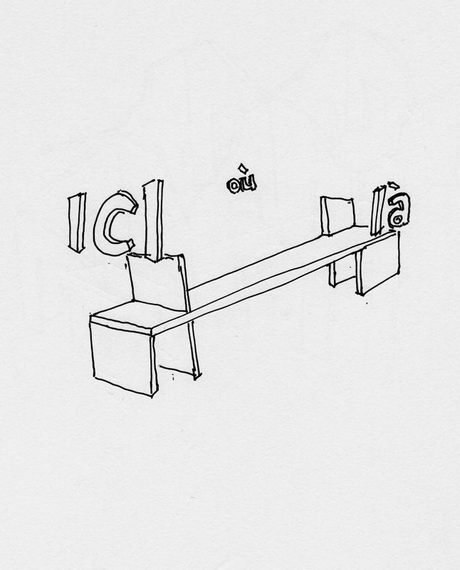 LÀ, un mobilier hybride sera proposé, mi assise collective (banc), mi assises individuelles (chaises), l’ensemble sera recouvert de peinture réfléchissante, micros billes enchâssées dans la peinture et qui renvoient la lumière comme des catadioptres.
