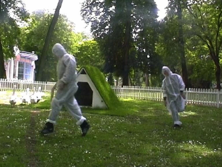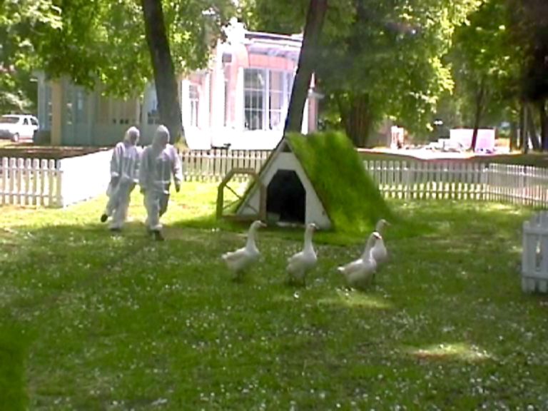 Installation sonore, six oies.