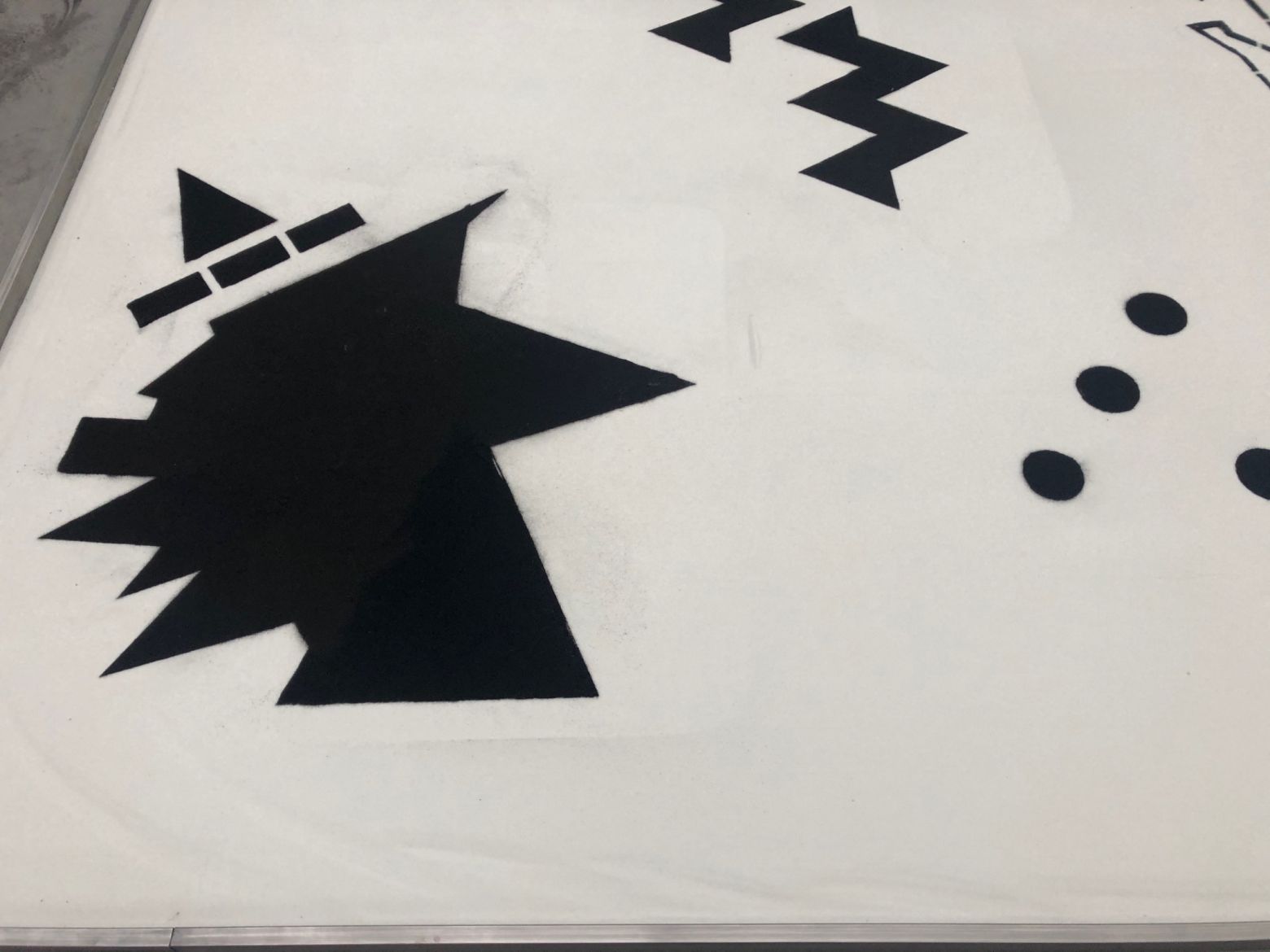 Les motifs dessinés par Cécile Le Talec au pigment noir de vignes sur ce tapis de sable reconstitué rendent compte – à l’instar de la bande son dont ils sont autant d’échos visuels – d’une tentative de transcription des paroles, discours et autres sonorités entendus lors de ses séjours au Maroc, en un langage énigmatique. Ils rappellent par ailleurs de manière à la fois mimétique et symbolique l’importance au sein de la culture berbère des écritures inscrites dans le sable du désert – à des fins d’orientation – comme de celles tissées dans les tapis par les femmes.