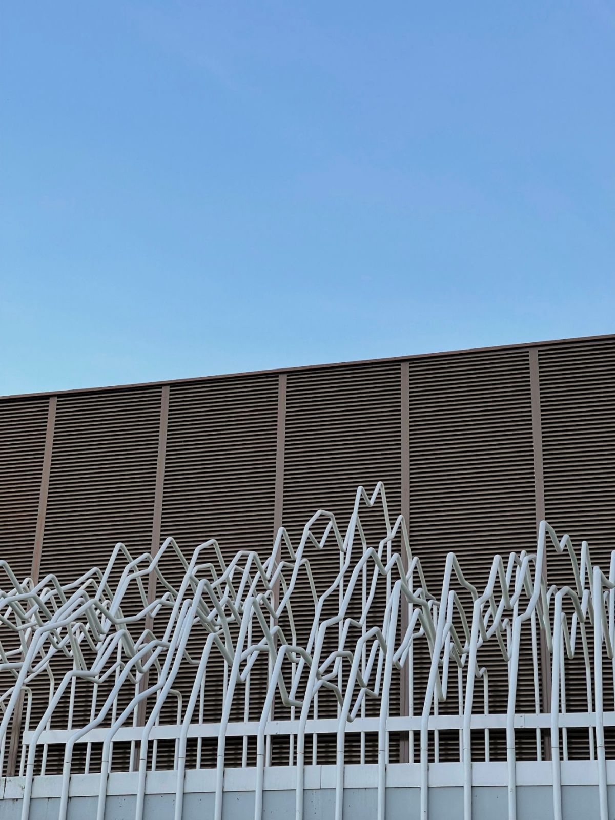 Acier inoxydable, peinture blanche au four, QR Code (composition sonore), 900 x 450 x 400 cm.