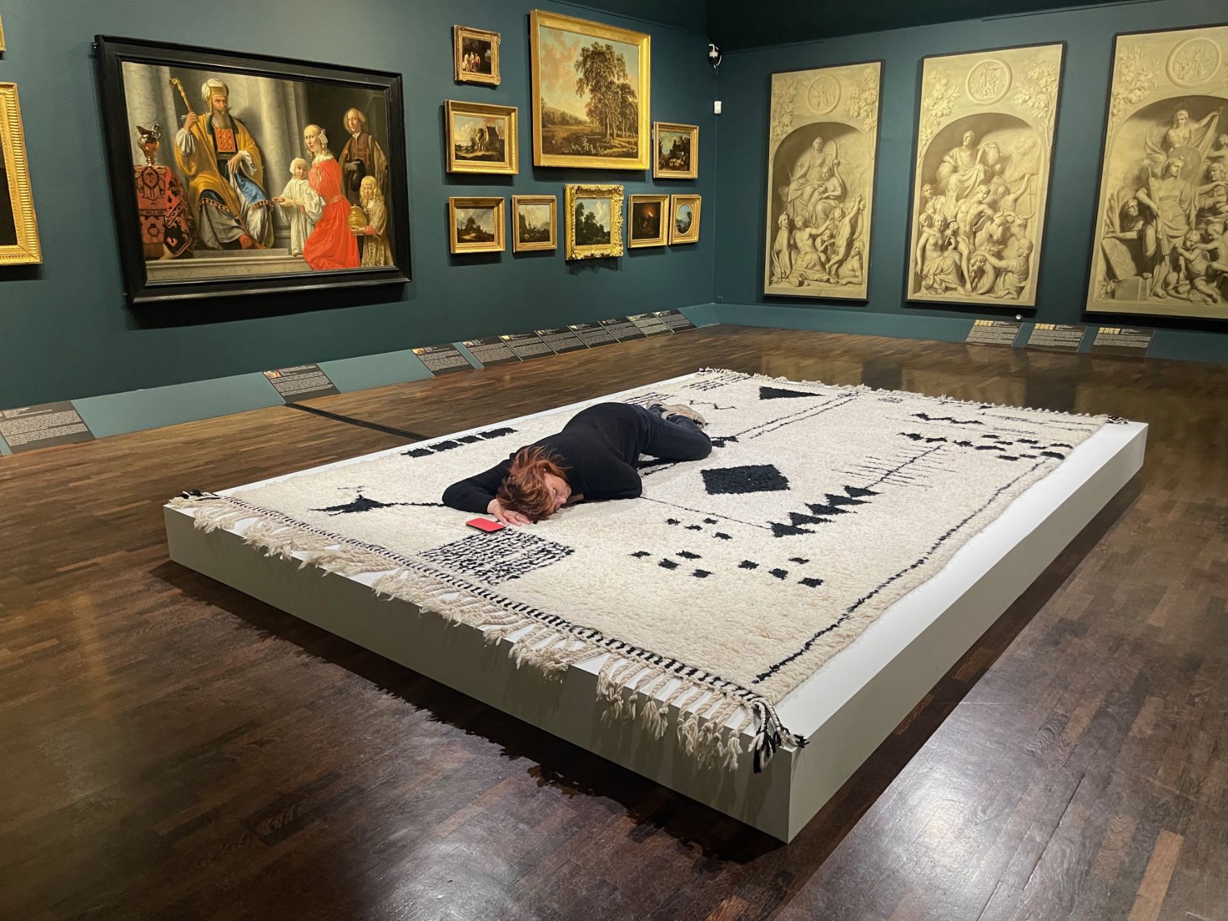 Tapis de laine, système d’amplification sonore, 300 x 400 cm.