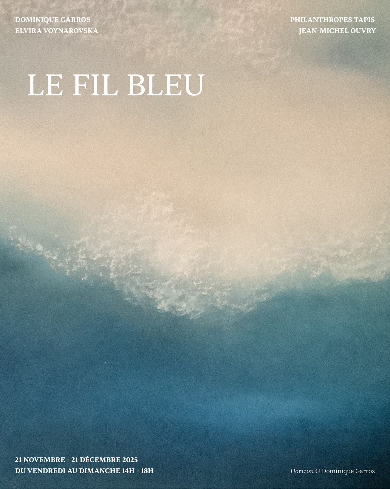 Conçue avec Dominique Garros, Philanthropes Tapis, Jean-Michel Ouvry et Elvira Voynarovska, l’exposition Le Fil Bleu explore la manière dont une couleur devient passage, lien, mémoire. Le bleu circule d’un médium à l’autre, tisse des correspondances entre nos ateliers, navigue entre terres, pigments, fibres, encres et gestes.