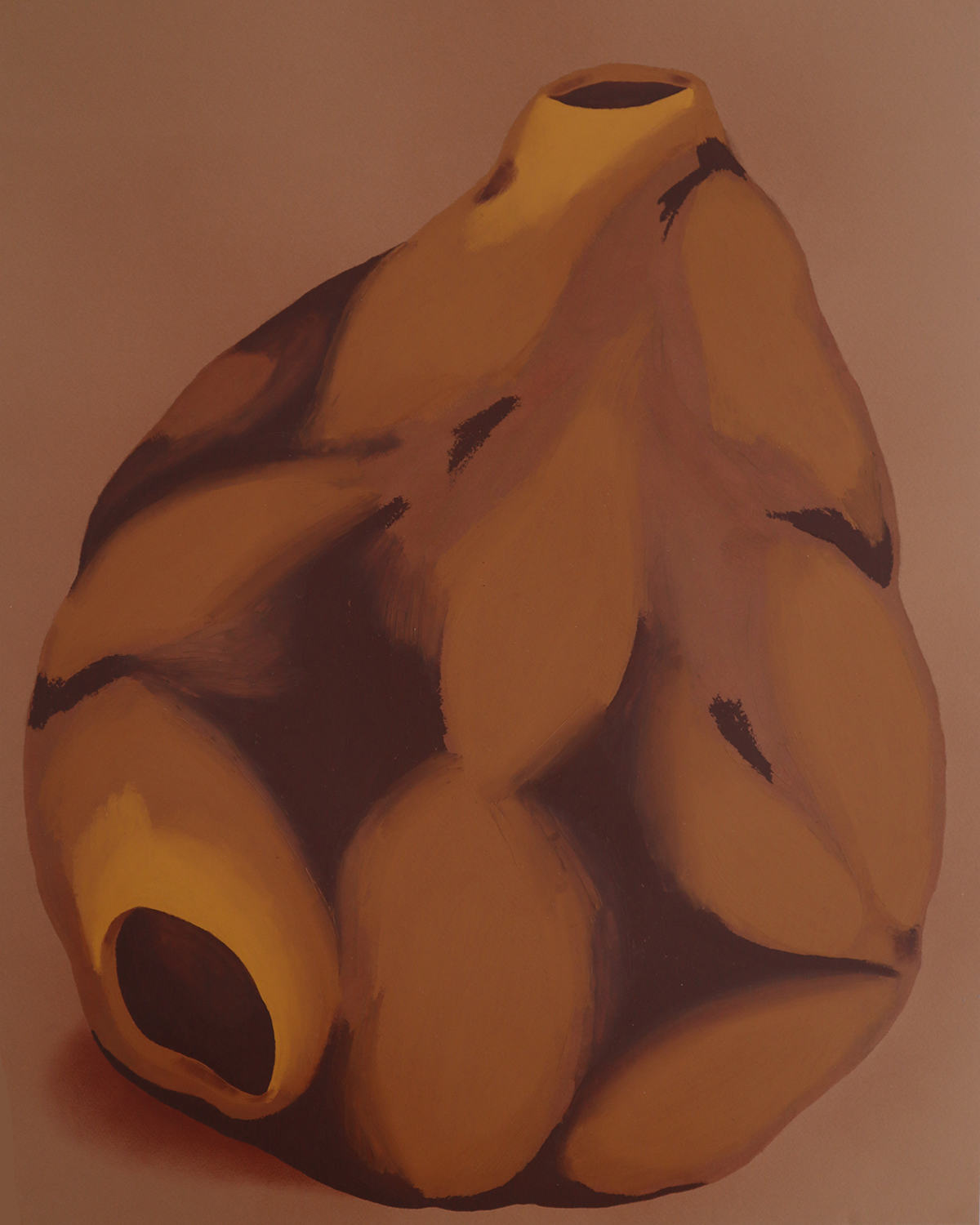 Ces dessins d’habitats imaginaires archaïques et futuristes à la fois, sont une projection fictive de la maison contemporaine qui se concentre non pas sur la fonctionnalité mais plutôt sur le bien- être. Intitulé holobiontes, ce qui définit en langage scientifique un supra organisme, un ensemble, qui héberge d’autres individus, et traduit une vraie relation symbiotique. C’est pour moi une définition des architectures organiques, inspirées par diverses espèces, créant des liens entre le micro et le macrocosme. Un holobionte est une collaboration entre l’intérieur, les habitants, mais aussi, avec l’extérieur, le paysage, le climat et les forces de la nature.
