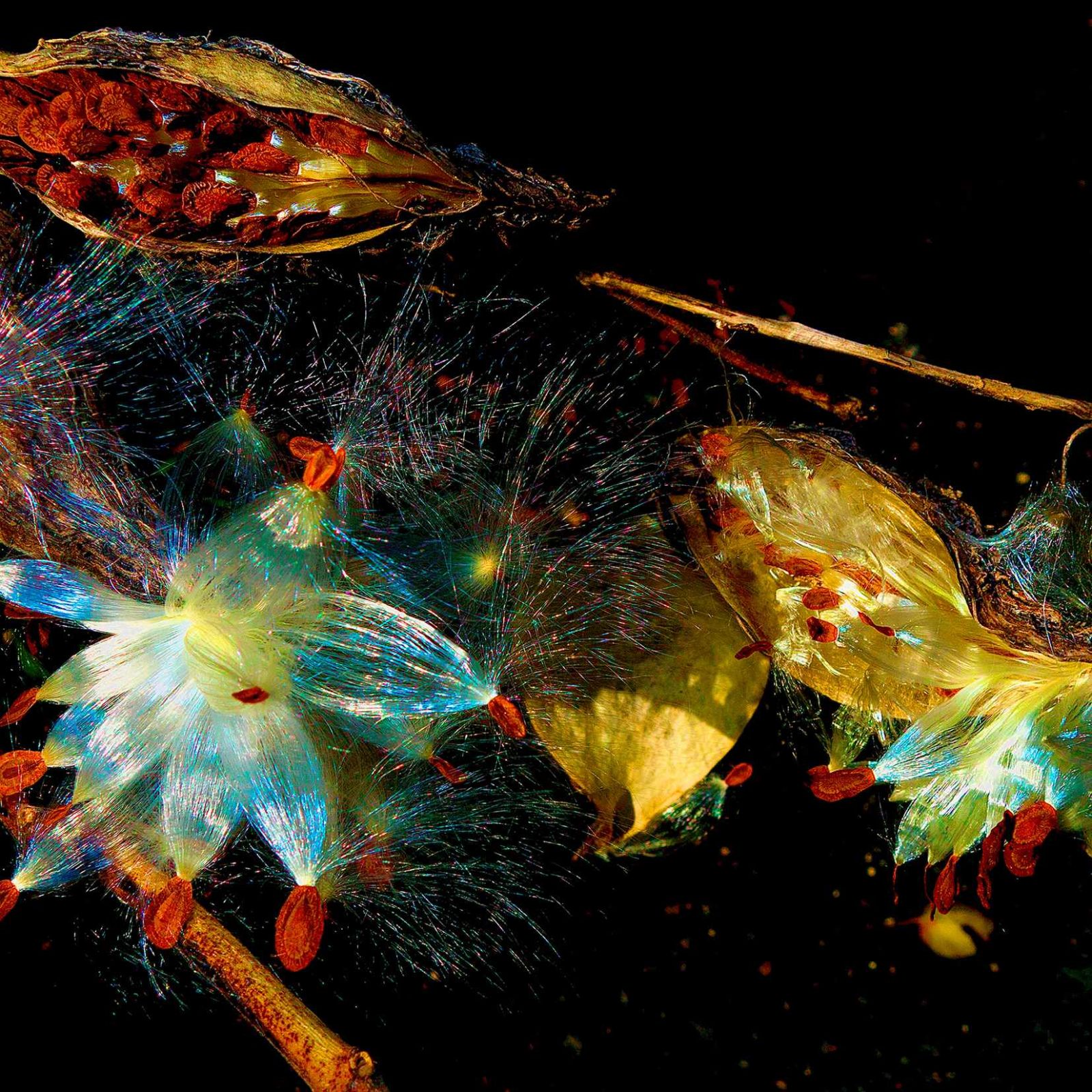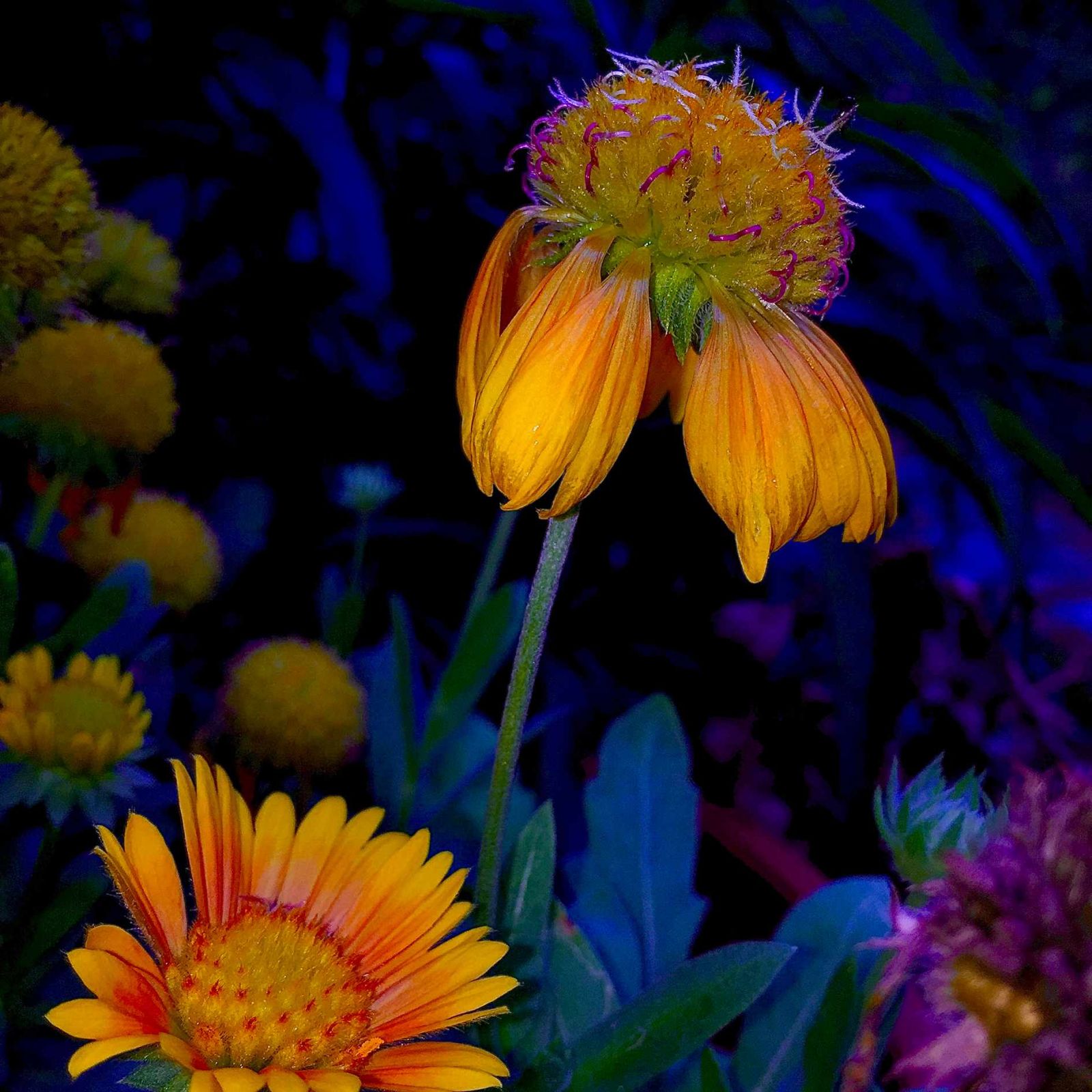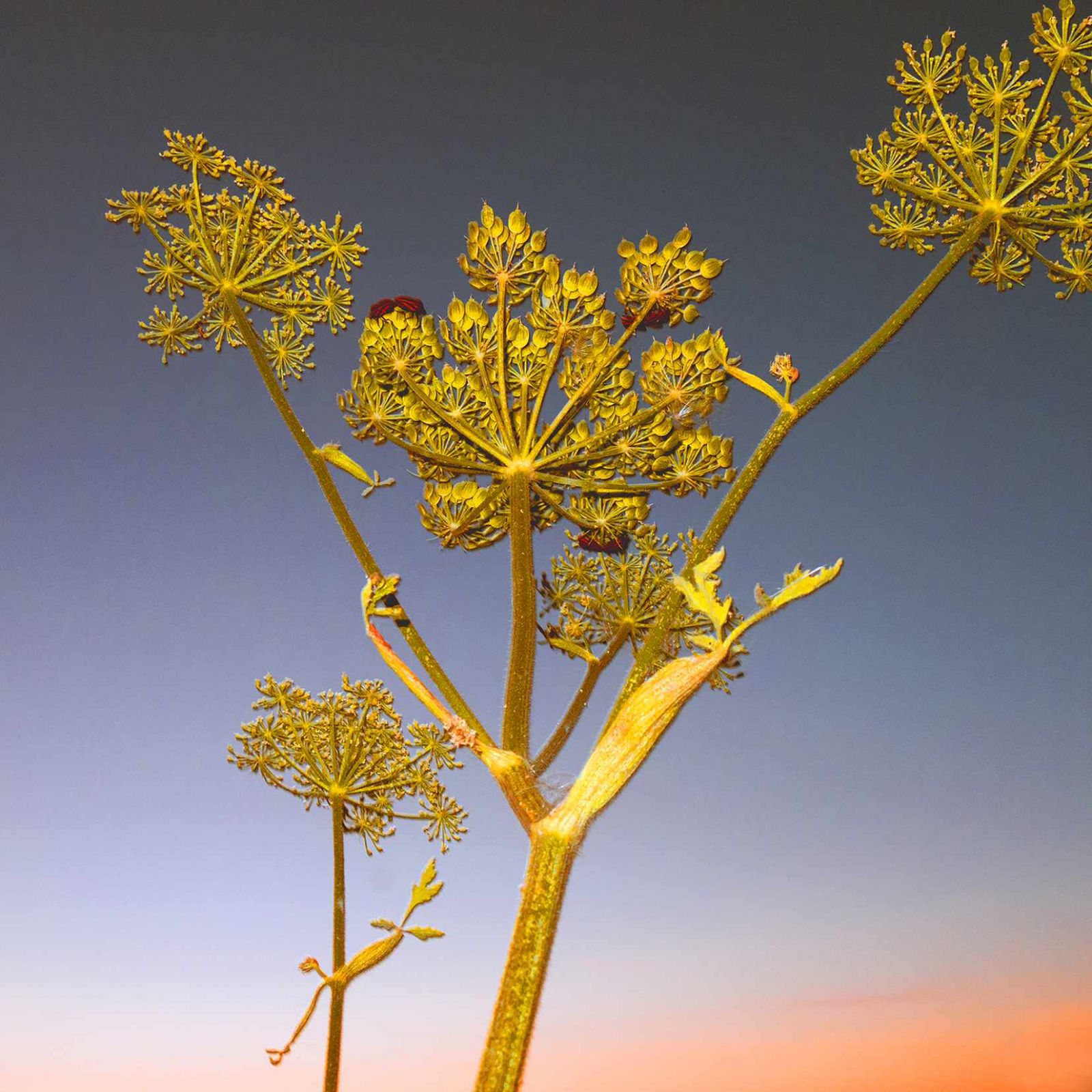 Un effet de merveilleux, d’éblouissement apparait. Il accentue la dimension onirique et magique des fleurs saisies dans leur contexte - champs, ciel, soleil couchant, jardin - et les conduit vers une iconographie poétique et lyrique, dont les éléments, à priori simples, sont portés à une certaine incandescence.