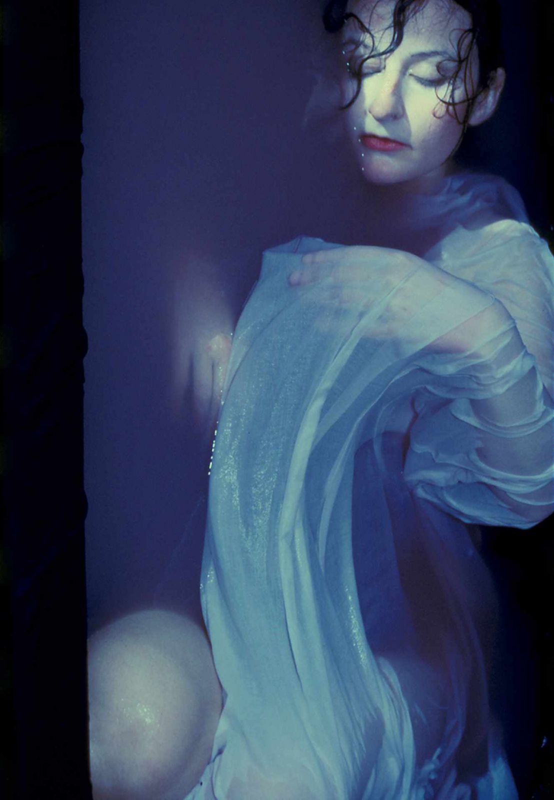 « Florence Chevallier, entourée d’accessoires rudimentaires (fleurs, bijoux, bougies) compose un petit théâtre dont elle joue tous les rôles. Fardée, peinte, maquillée, couverte d’un linceul, elle s’exhibe sans pudeur à travers une série de personnages (madone, princesse, putain ou fée). Sincérité et dérision se mêlent dans ces scènes imaginaires et poétiques liées à l’enfance. L’iconographie de ces tableaux funéraires parodie les stéréotypes de la mort figurés dans les images saintes. Par ce jeu de miroir avec son double, Florence Chevallier accomplit une sorte de voyage exotique et initiatique dans l’au-delà. Ses coloris suaves et aigre-doux rompent pour la première fois avec le langage du noir et blanc, spécifique de Noir Limite. »
