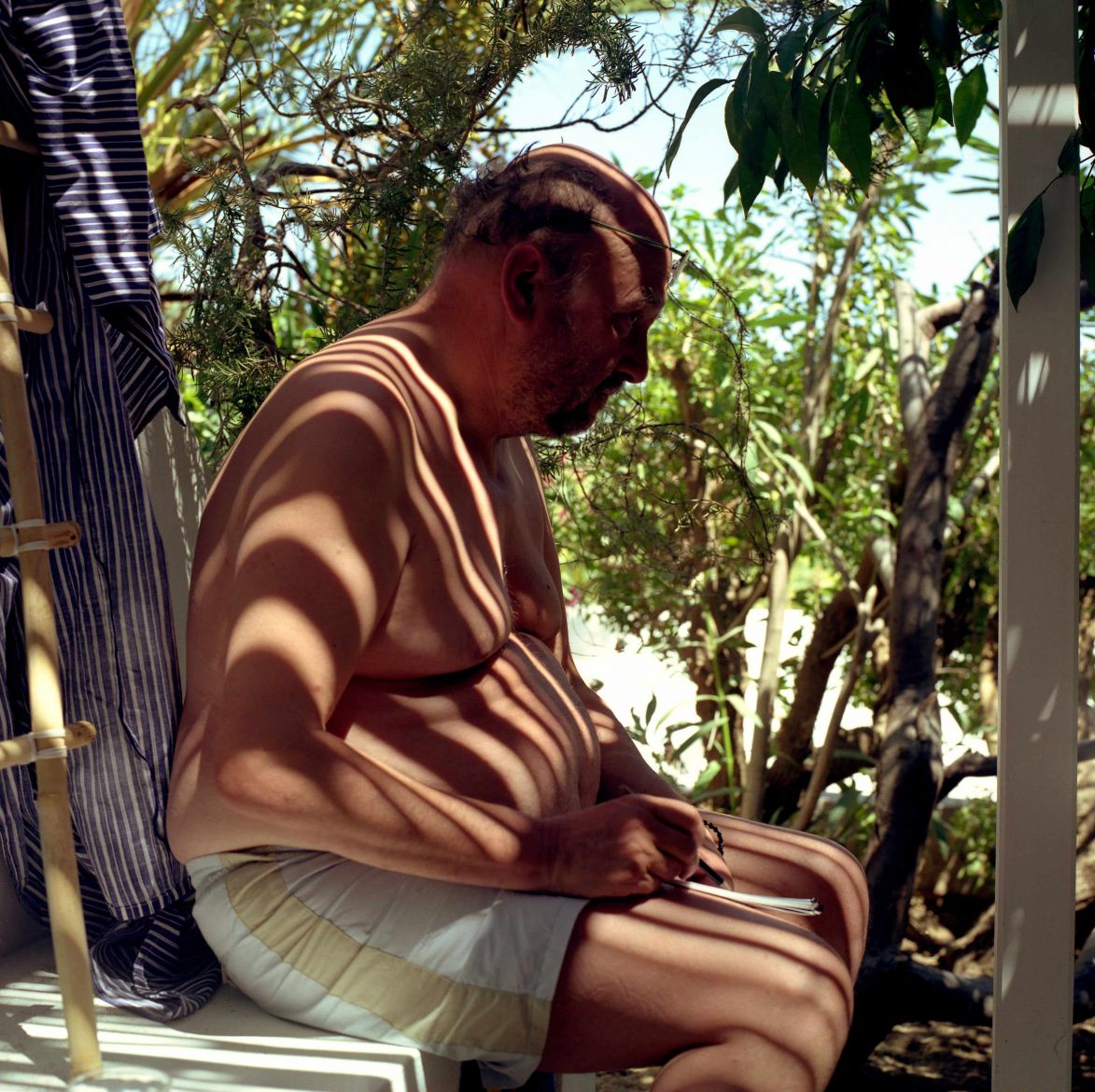 Photo 1 : penché vers la terre, embrassant le soleil végétal d'un champ de lin en fleurs, l'homme est ici un lien qui unit la terre au ciel, le Nord au Sud : le temps élargi y accueille Van Gogh, qui fit la route à sens unique et qui montra souvent la courbure du dos de paysans inclinés vers la terre, bras ouvert, donnant (semant) ou recevant (cueillant) les produits de la terre teintées de toute la gamme des couleurs (note : La Ferme du Père Eloi, 1880, ou la Moisson de 1988, et bien d'autres), comme des formes unissant sous un seul signe l'homme des plaines de Hollande, du Midi ou de la région d'Auvers. Ainsi la durée et le mouvement viennent à l'image fixe. L'Instant Tableau rencontre son opposé symétrique, le cinéma, sous la forme photographique du photogramme..."