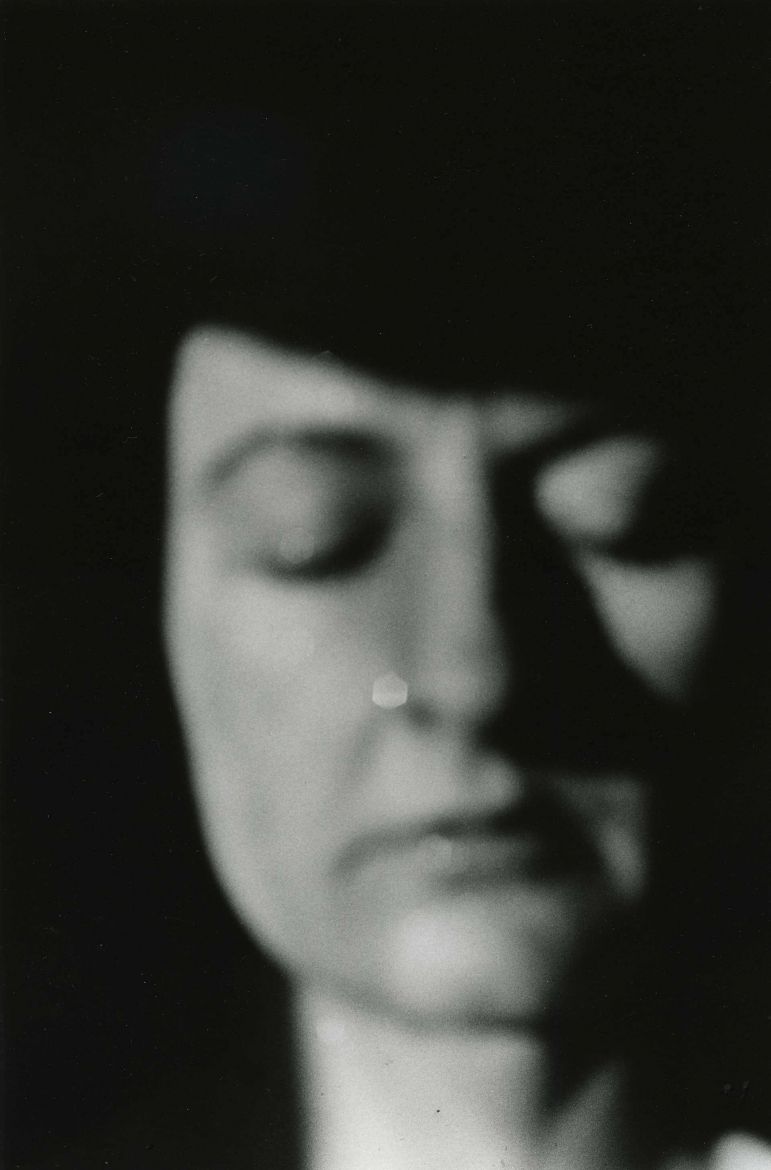 Les visages de la série Troublée en Vérité sont flous comme l’est un visage trop proche avec lequel on a du mal à faire la mise au point et qui nous force à reconnaître des sensations déjà vécues, des images déjà vues. Ils montrent l’insaisissable d’un visage, dont les traits s’estompent, se déforment, deviennent méconnaissables et expriment par des accents venus du dedans, l’agitation de l’être, son incapacité à se fixer dans une figure, son affolement face à la multiplicité des visages de soi dont on ne sait lequel retenir et s’il nous appartient. Ces visages s’offrent aux regards, tantôt les yeux fermés bloquant l’accès à toute reconnaissance, à toute tentative d’identification, tantôt yeux ouverts hypnotiques procurant le même effet de distanciation, d’éloignement, d’étrangeté. Ces visages n’appartiennent à personne. Ils ne font que figurer des états d’âmes enfouis, des ombres anciennes venues s’appliquer sur mon propre visage, le menaçant d’étouffement à la manière d’un chat venant le recouvrir. Chaque photographie résulte d’une opération de « décollement » formant des spectres dont la perte est essentielle car ils sont plus près d’être des masques, des visages déguisés, dédoublant l’être et le menaçant tragiquement. Ces images s’engendrent mutuellement et successivement à l’infini, confirmant mon désir dès 1980 de « faire de moi un multiple » et non « de faire une photographie de moi ».