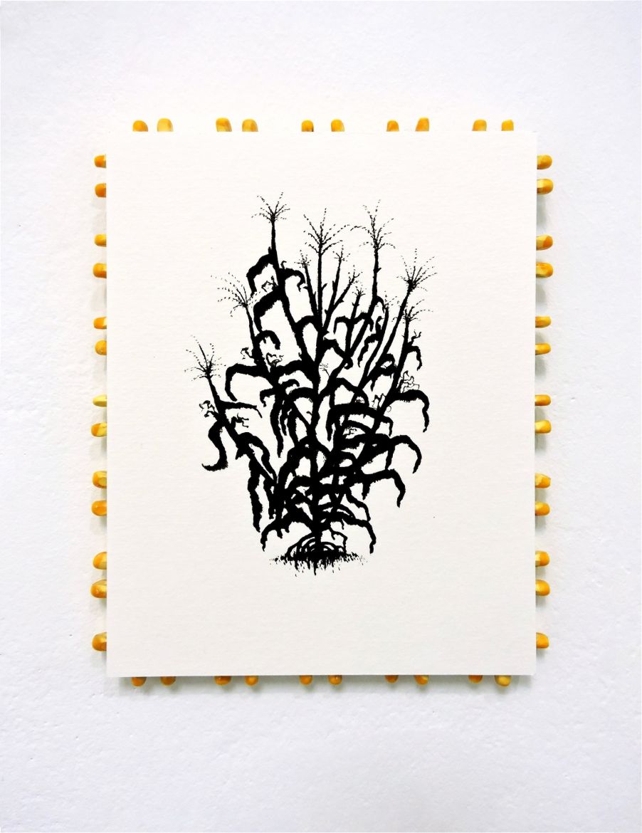 Encre de chine et grains de maïs contrecollé sur forex