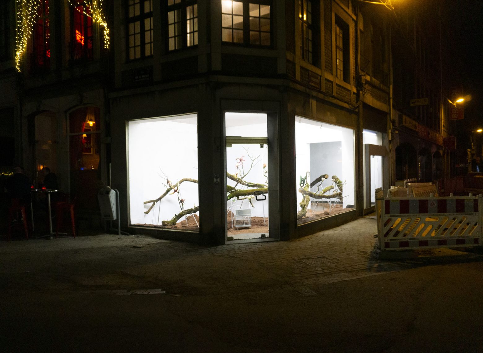 Symptomatiques d’une posture anthropocentrée où l’humain s’impose en maître incontesté du vivant, ces représentations maraîchères questionnent les limites de son pouvoir de domestication et de contrôle. Entre l’artifice de la céramique permettant d’exacerber les géométries et les couleurs, et l’organicité sinueuse des troncs et des mousses, ce travail invite à repenser l’idéologie computationnelle appliquée systématiquement par la société à son environnement.