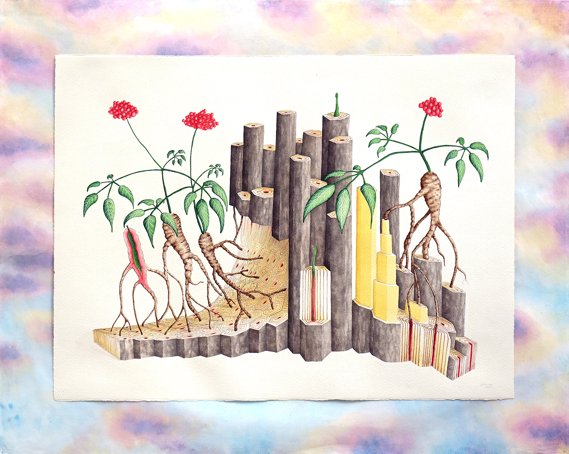 Dans cette perspective, les représentations anatomiques, dépossédées de leur fonction diagnostique, sont transfigurées en architectures organiques, des paysages intérieurs où le corps devient une terre agricole représentent un champ de significations bien réel. Les végétaux choisis sont chargés de récits, véritables symboles ils sont des jalons dans l'histoire et la culture Coréennes, rappelant les traditions, les croyances et les événements historiques qui ont façonné l'identité du pays.