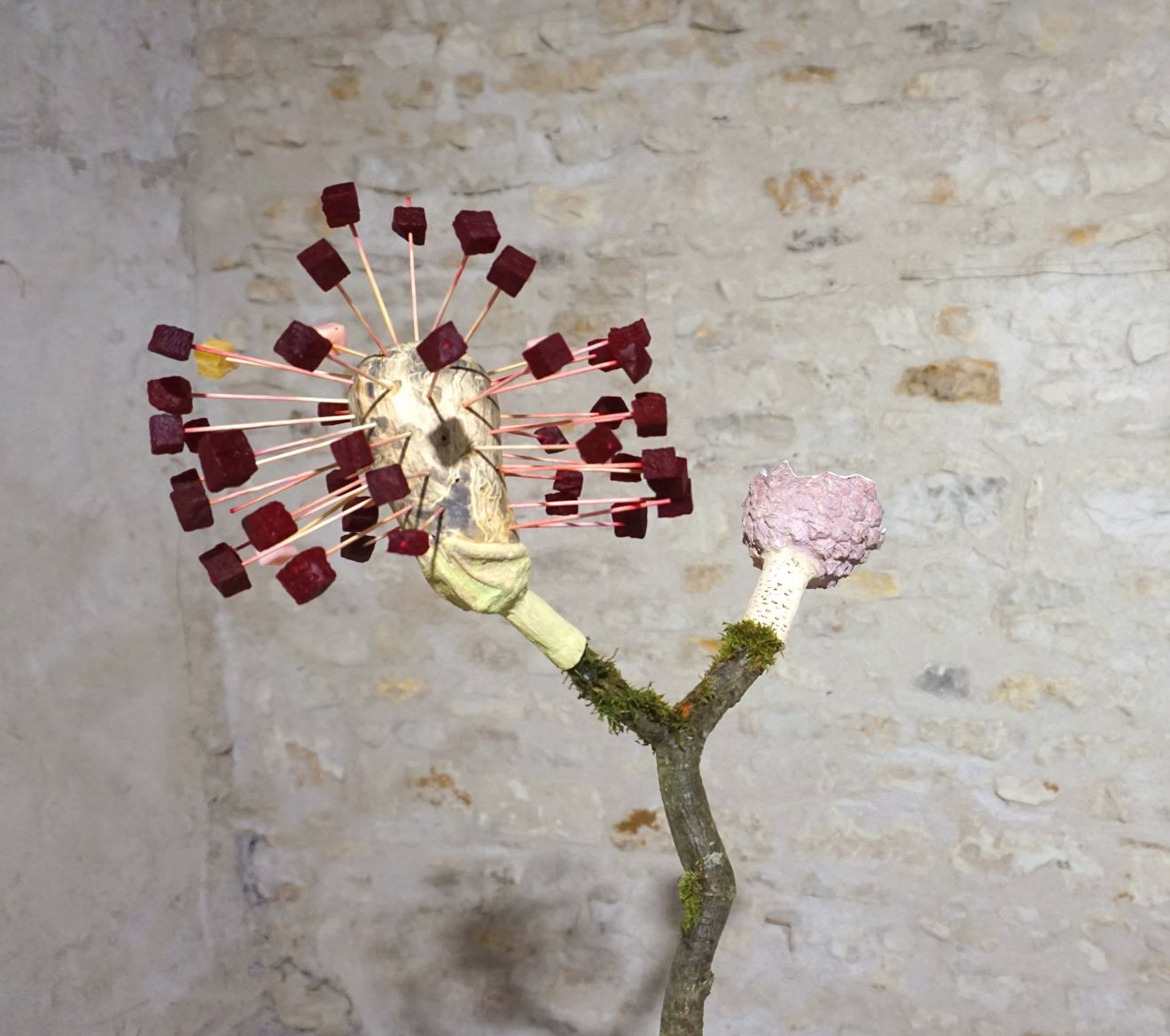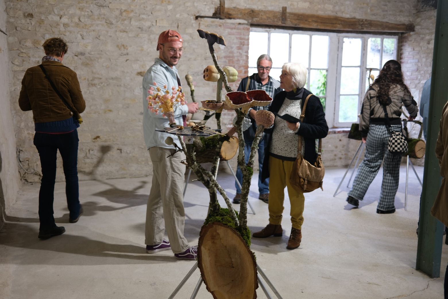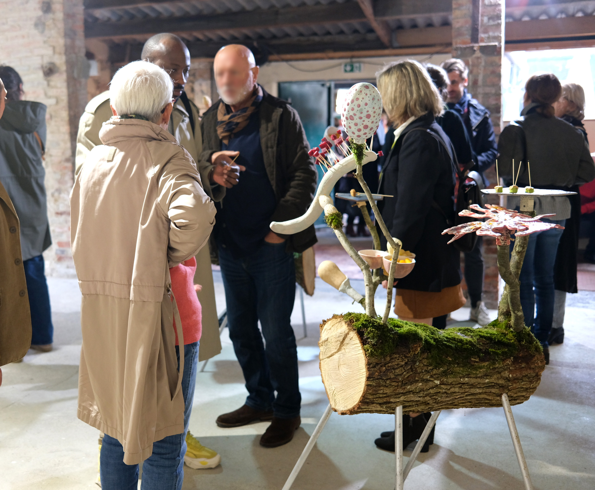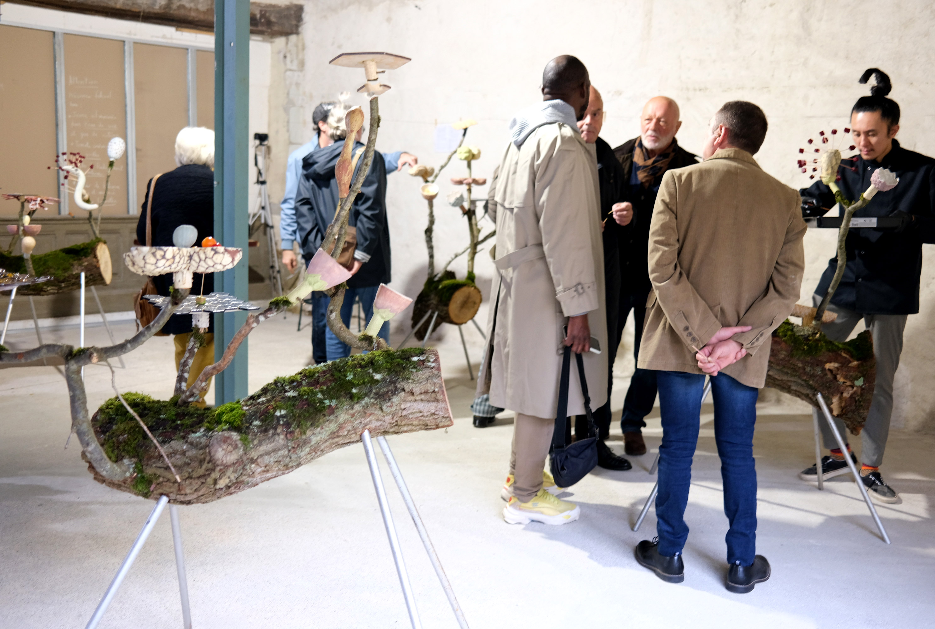 Sections de troncs d’arbres, bryophytes, tubes d’acier, céramiques, nourriture variée
