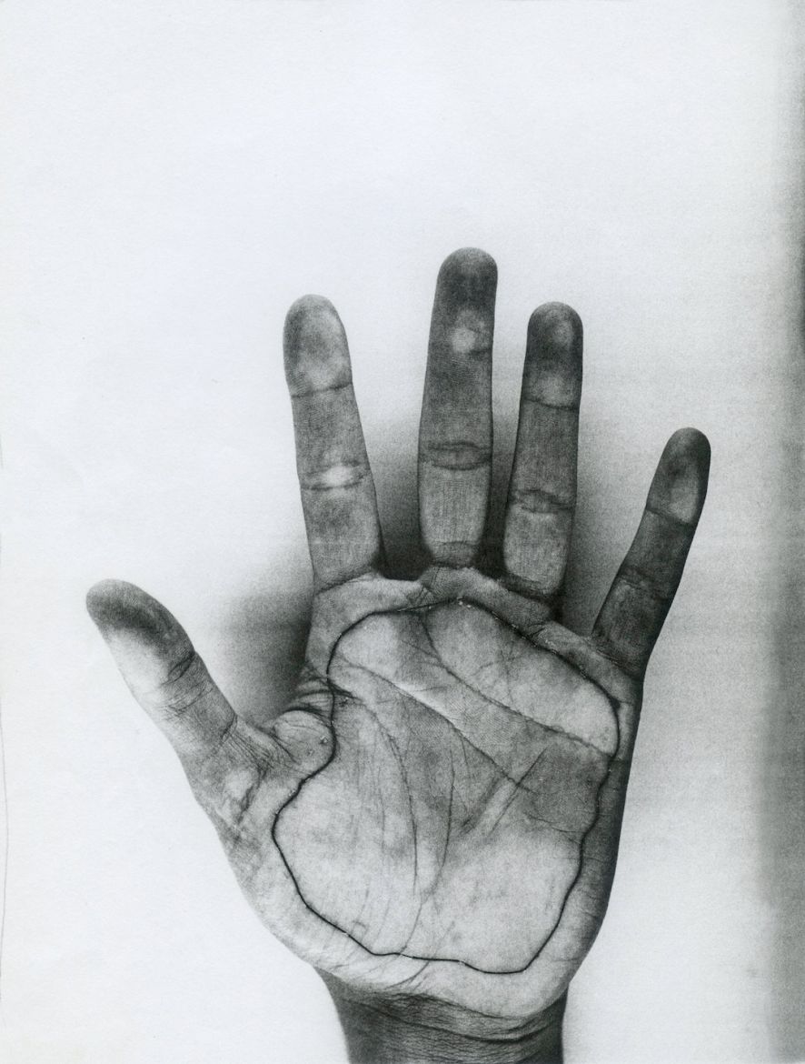 Faire le tour de la paume de la main, coudre les lignes de la main, août 97