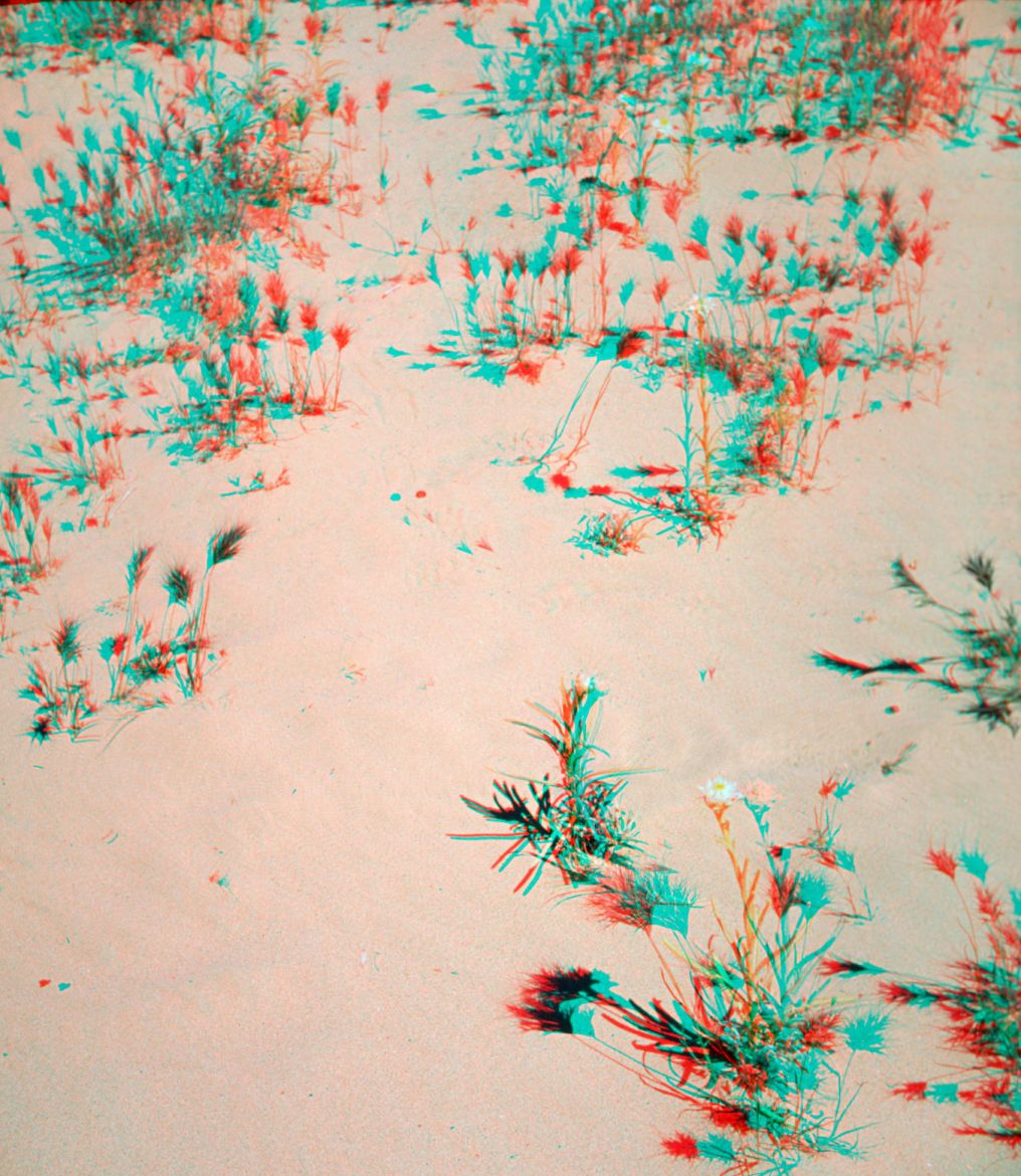 Série de vues stéréoscopiques en anaglyphe, tirages argentiques contrecollés sur aluminium