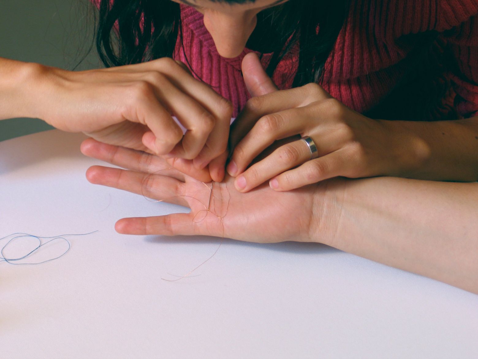 Il s’agit de flirter avec la limite entre l’intérieur et l’extérieur du corps, en pénétrant sous la couche superficielle de peau qui protège la paume des mains.