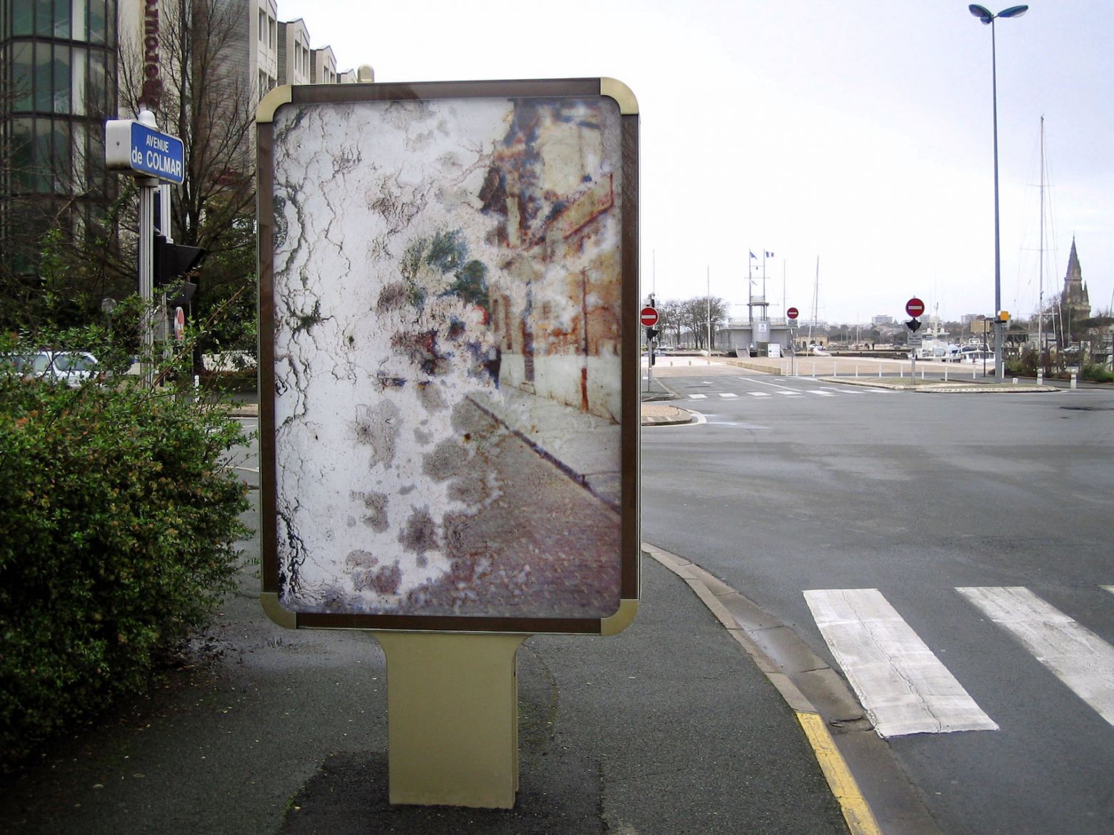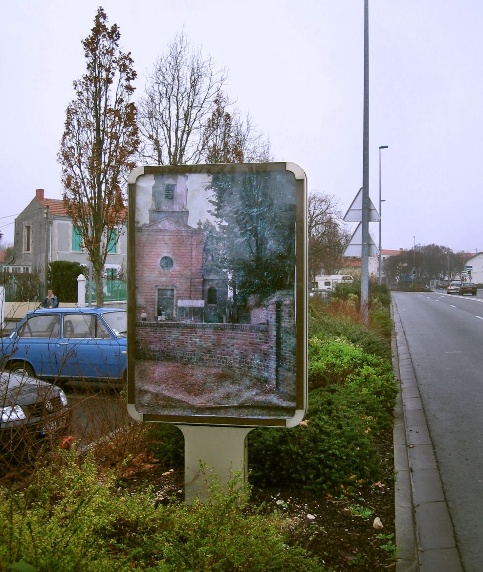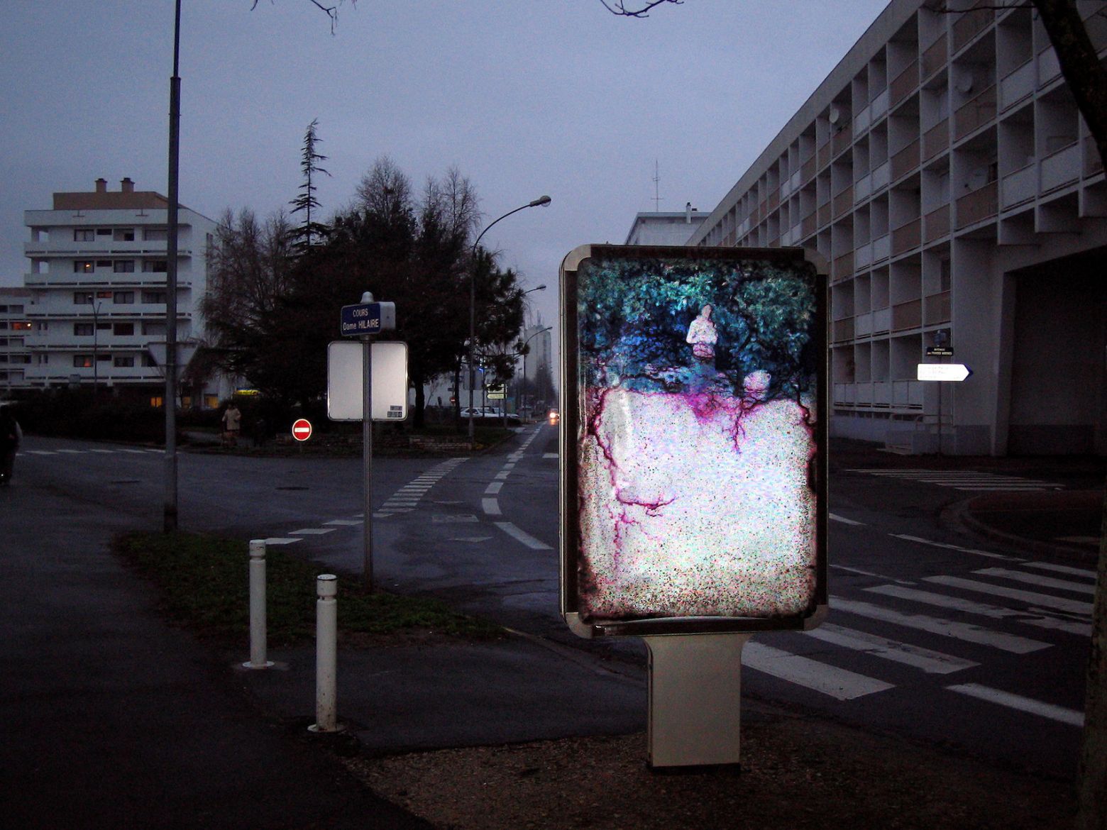 Cette série a été réalisée à partir d’un ensemble de diapositives verticales trouvées (photos- souvenir de paysages, portraits d’ancêtres) dans un état de dégradation important, parfois jusqu’à disparition de l’image initiale. L’émulsion est altérée par l’humidité et le développement de moisissures. La transformation produite par l’activité des moisissures donne une profondeur aux images, comme une 3e dimension. L’image semble incarnée et inscrite dans une durée, celle du processus de transformation. Des tirages sont exposés dans le mobilier urbain (sucettes Decaux, abris bus), emplacement réservé aux images publicitaires avec lesquelles elles opèrent un contraste maximum.