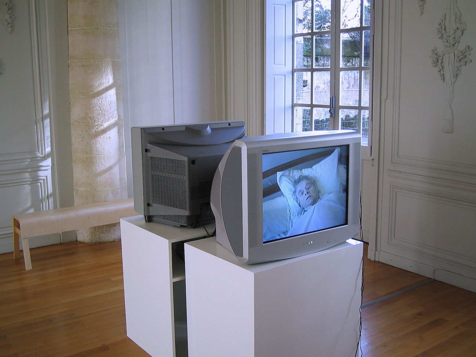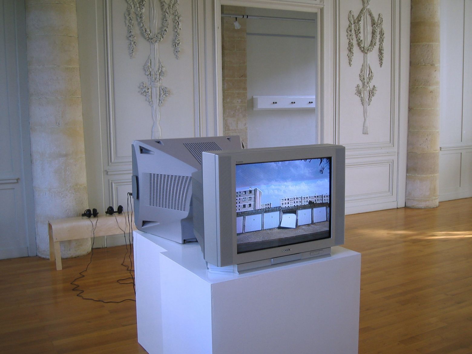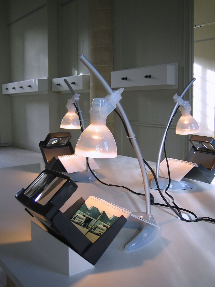 Au sein de l'espace Gargoulleau aux moulures XIXeme, les oeuvres se déploient globalement selon une présence discrète : recoin vidéo avec écoute au casque pour Biotope et Le jour s'est levé, et dispositifs de visionneuses stéréoscopiques nécessitant une approche individuelle de l'image.