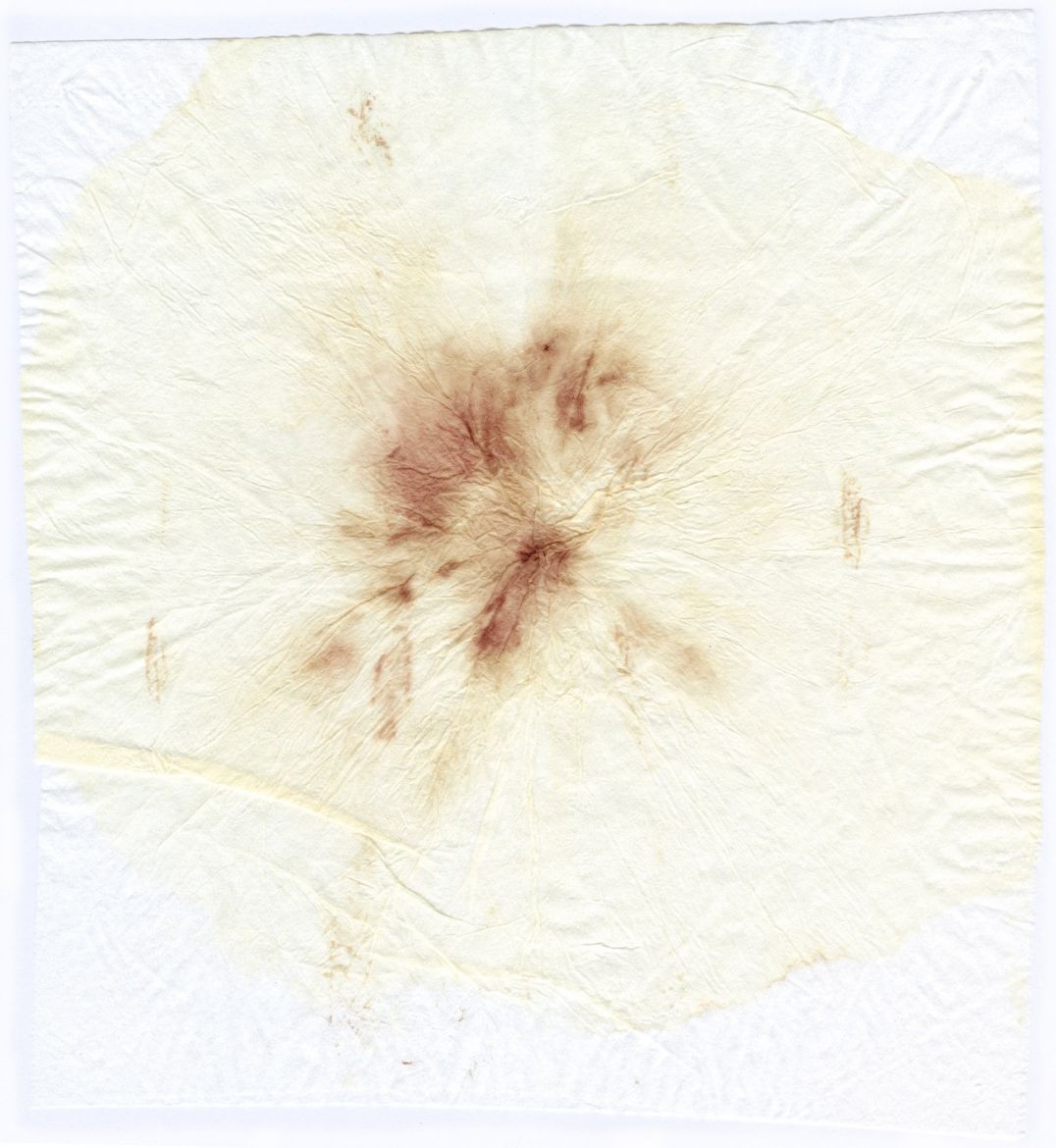Mouchoir en papier imprégné de sang menstruel, d'urine et de sperme