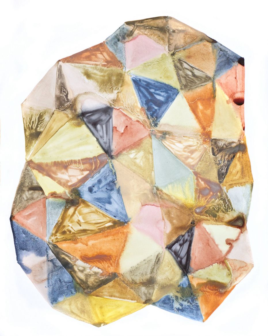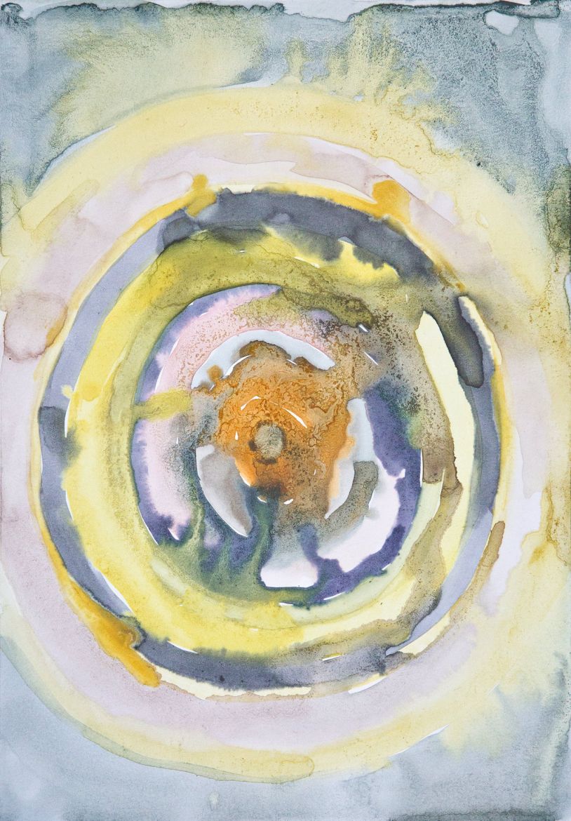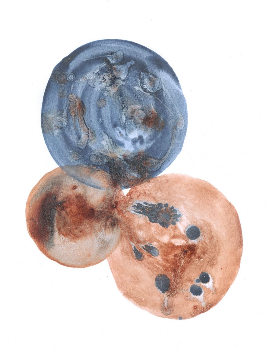 Sang menstruel et pigments végétaux (baies de troène, phytolaque, peau d'oignon jaune, cassis) sur papier