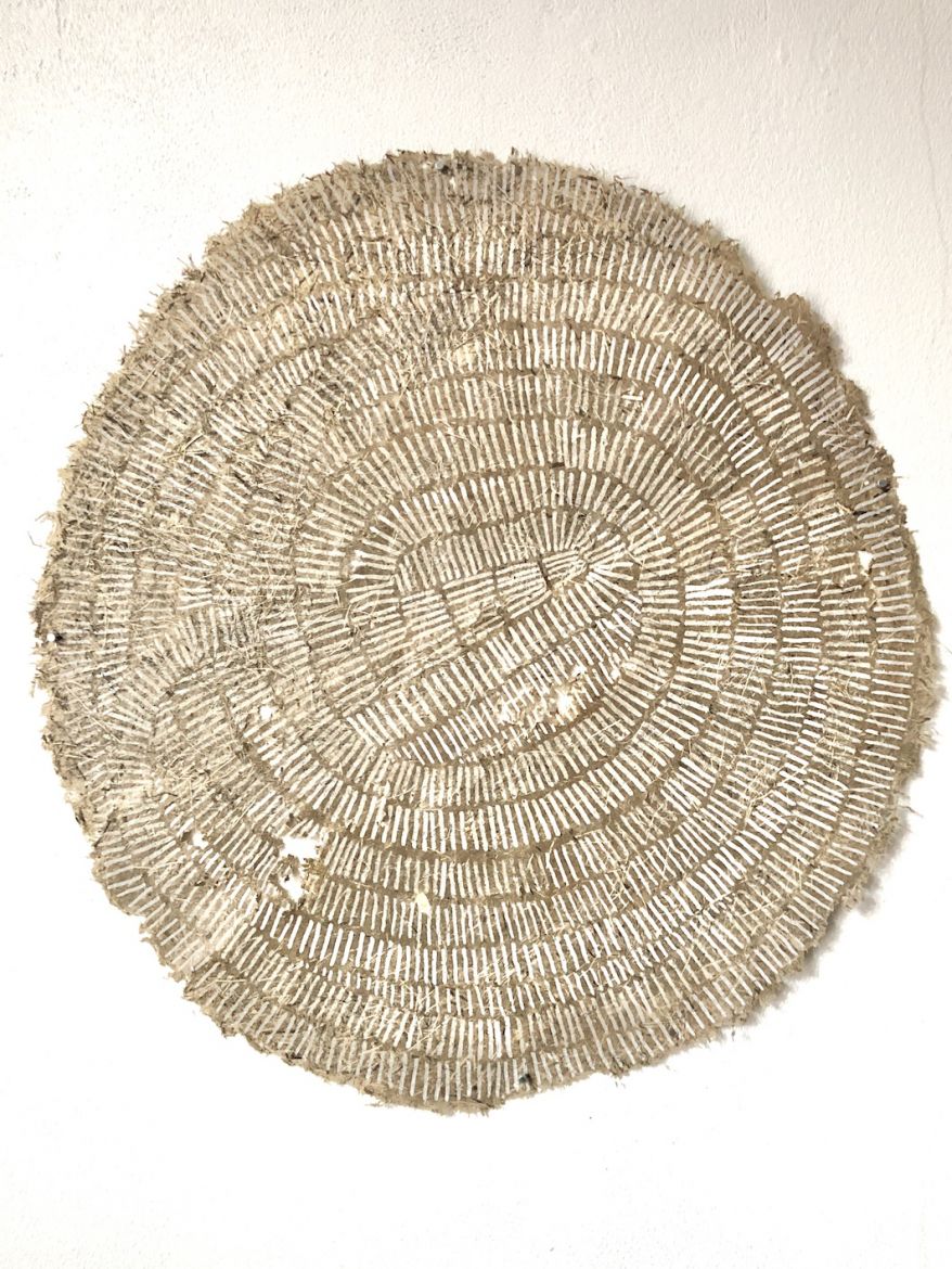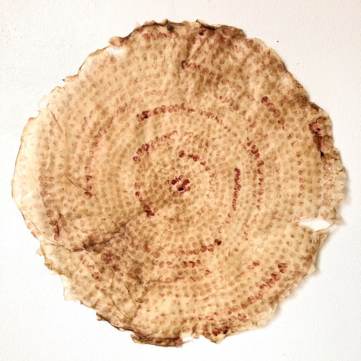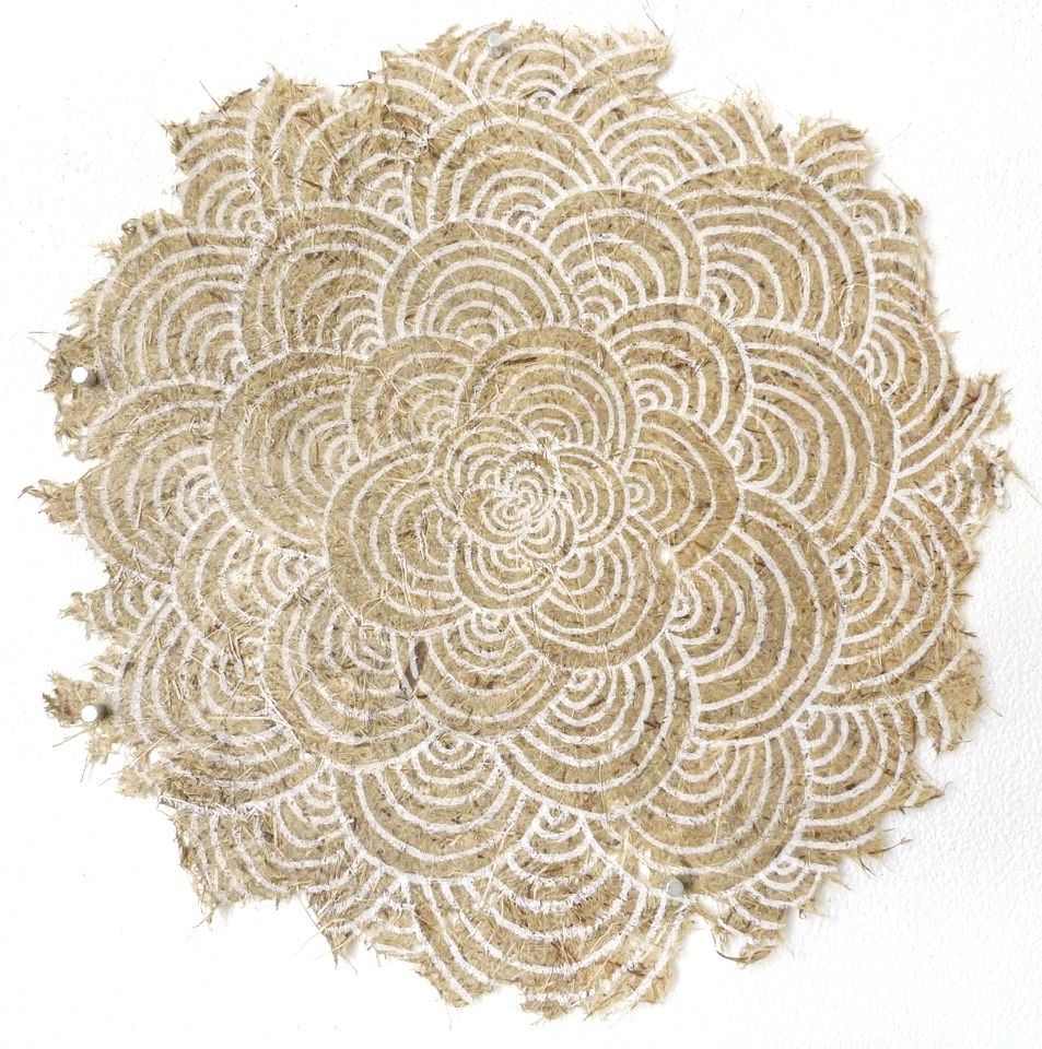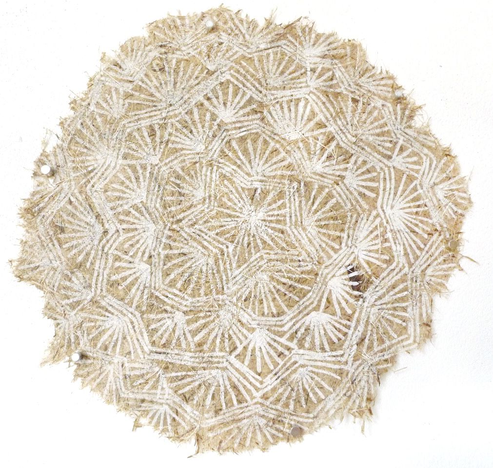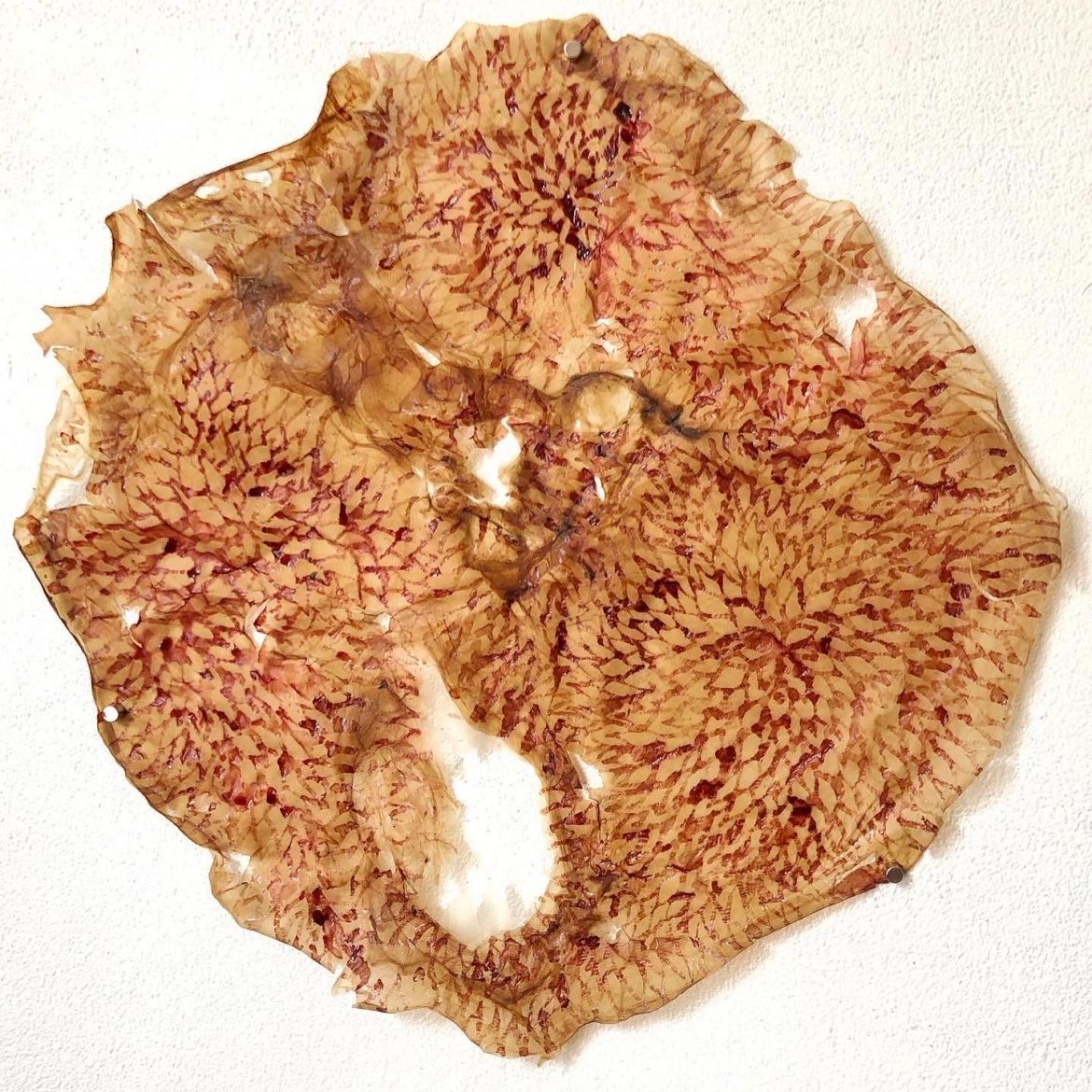 Acrylique sur papier de plantes (iris des marais, liber de chêne, gaillet gratteron, ortie)