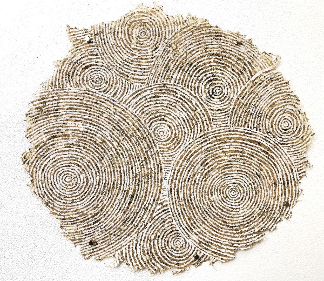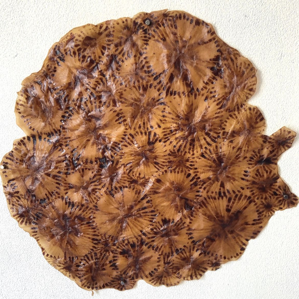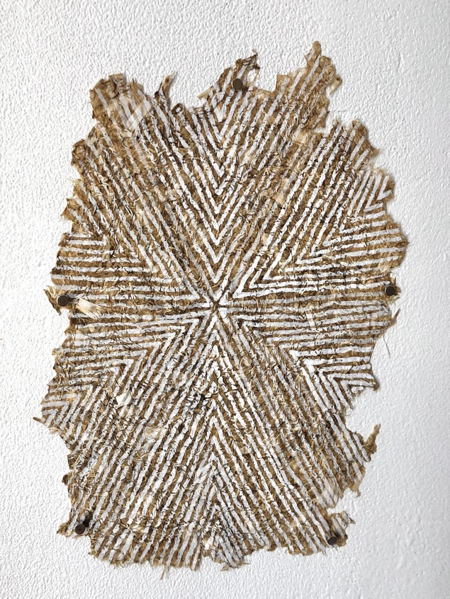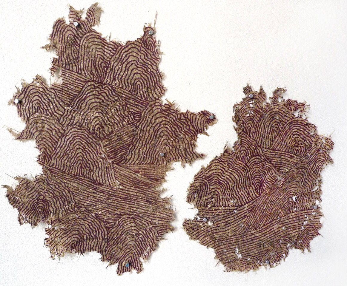 Acrylique sur papier de plantes (iris des marais, liber de chêne, gaillet gratteron, ortie)