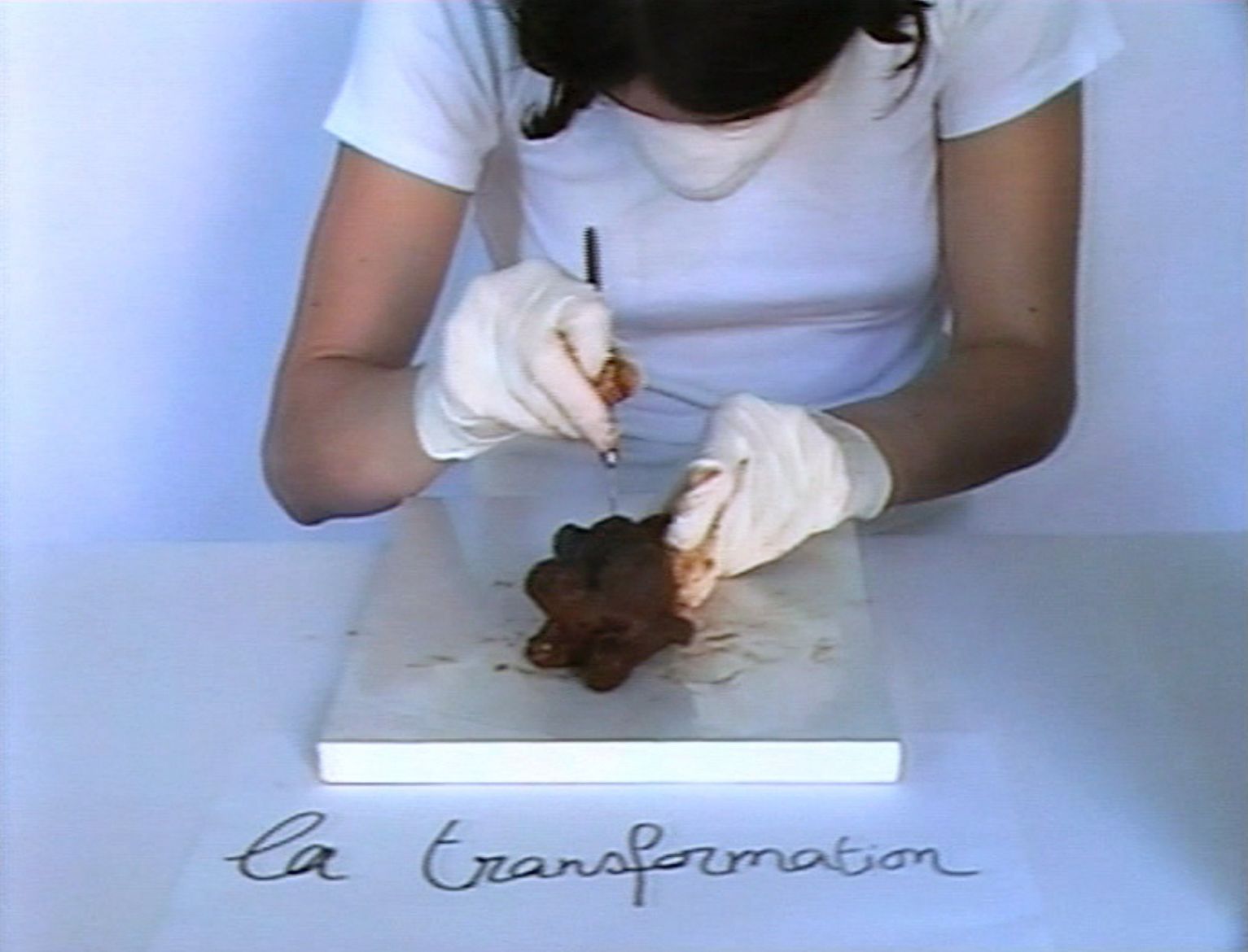 Vidéo inspirée des démonstrations de bricolage exposées dans les grands magasins, accompagnée d’un collage sonore de discours pseudoscientifiques sur l’esprit et la matière. Cette vidéo expose une posture ironique concernant la dualité de l’être corps-esprit, mise en parallèle avec l’opposition entre matériau abject et objet d’art.