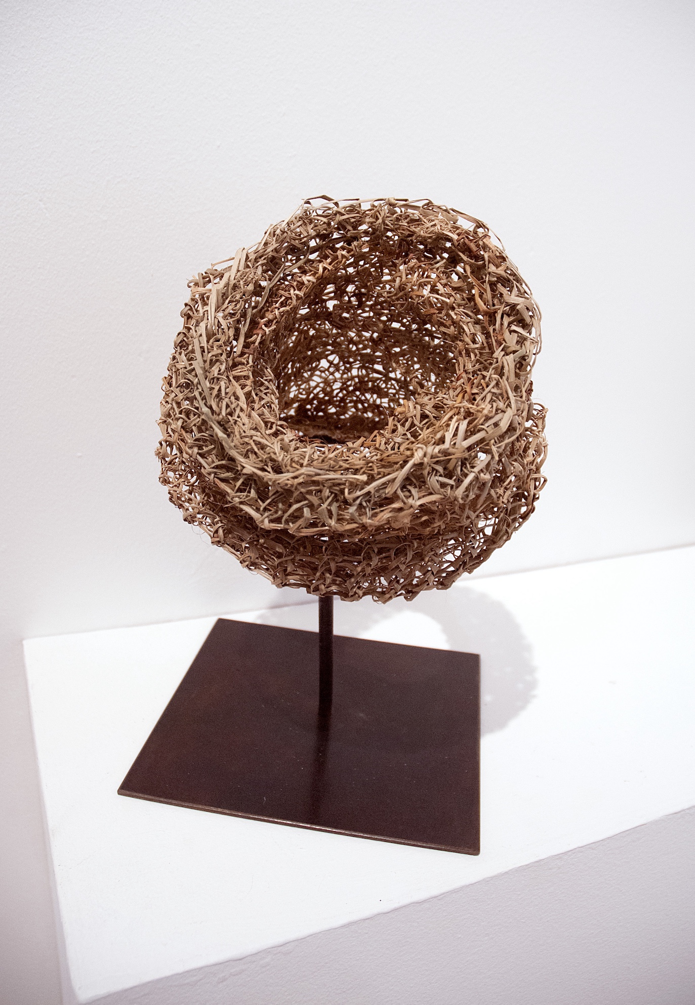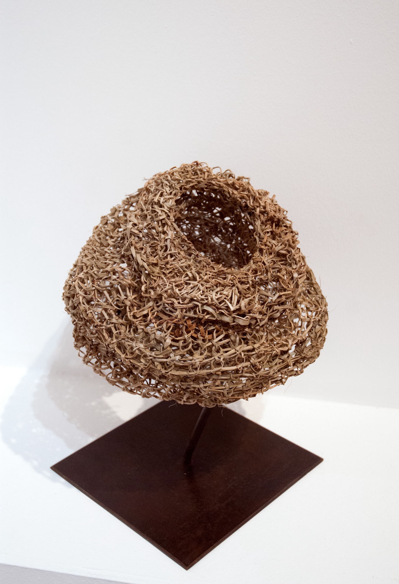 Tressage de feuilles de phormium divisées sur socles d'acier