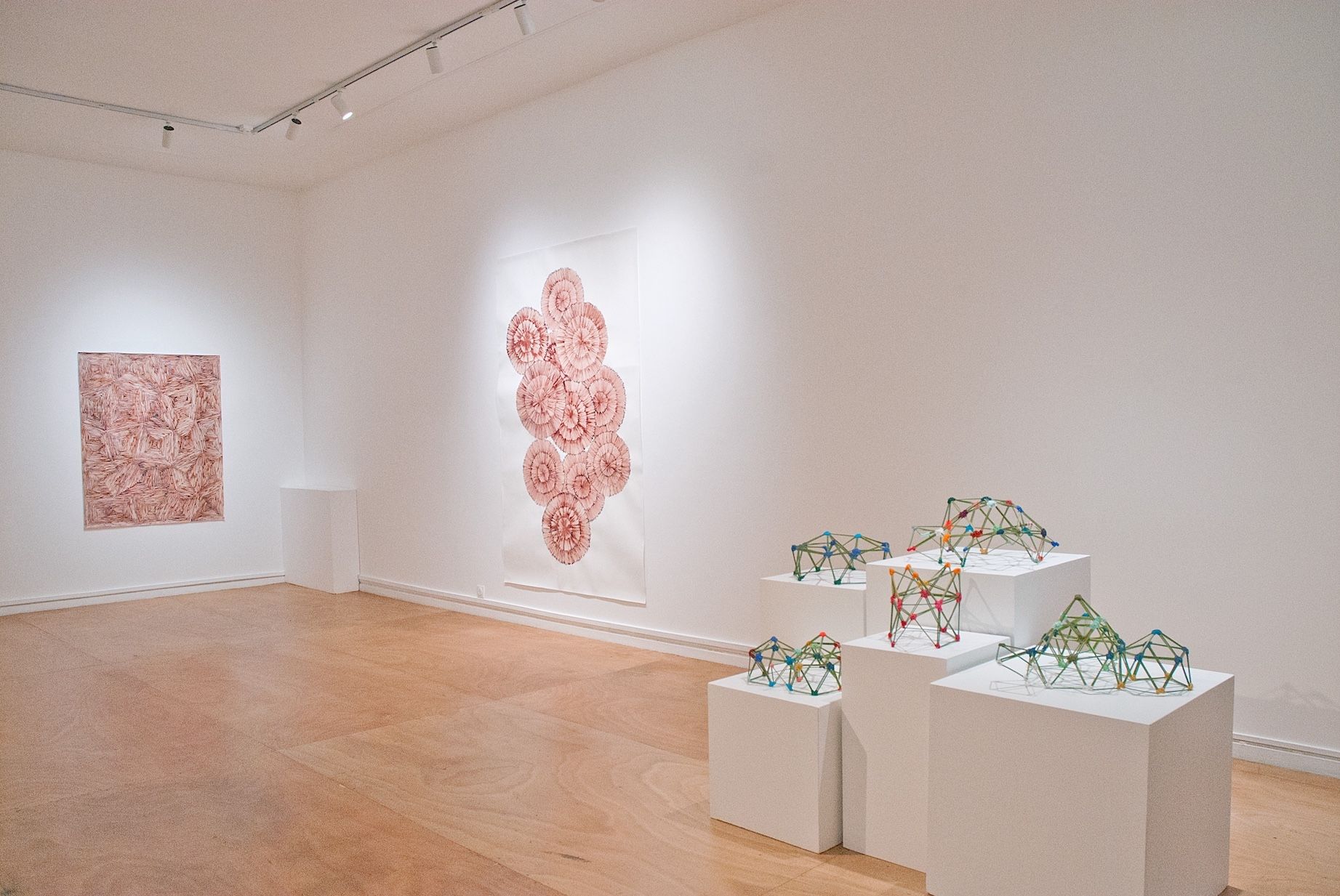 Grandes sanguines vibratoires, de formats variables, 2025. Sang menstruel sur papier. 160 x 120 cm et 200 x 160 cm.