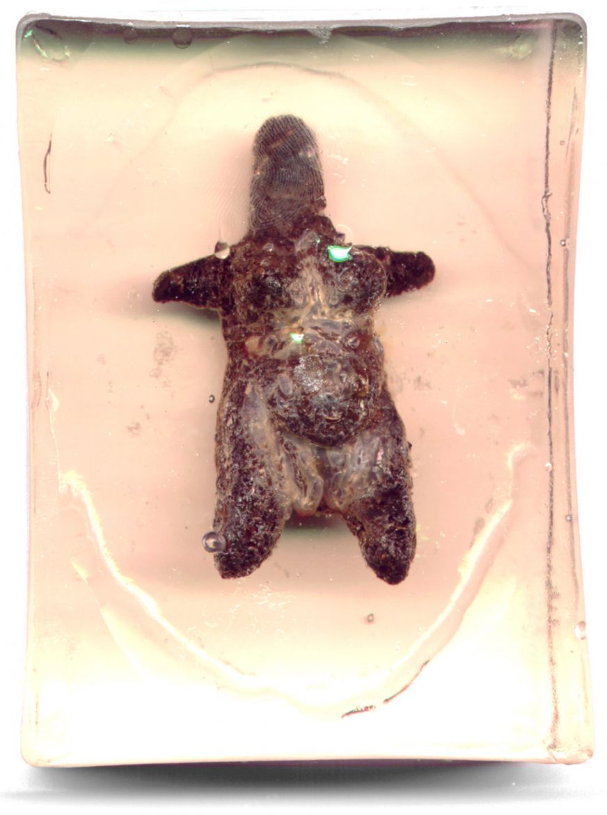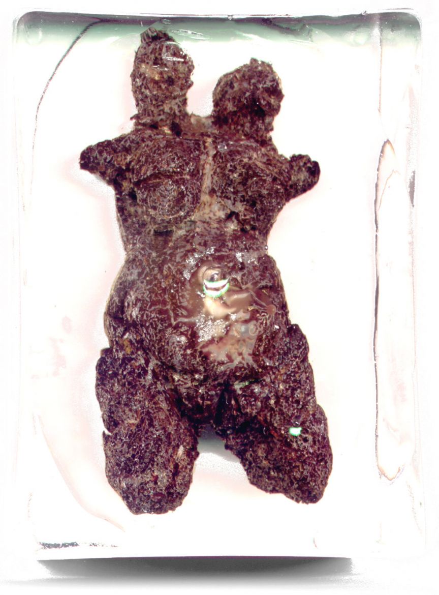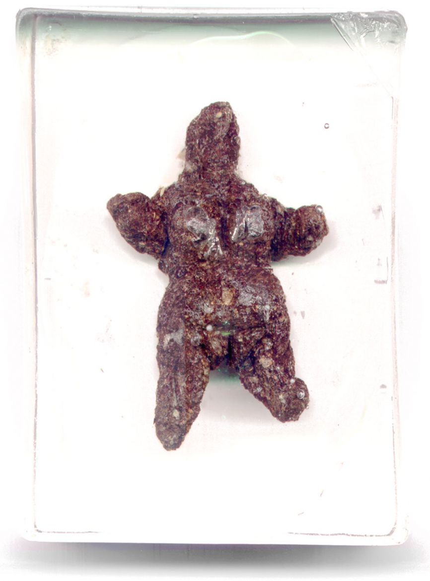 Les excréments sont récupérés puis modelés pour évoquer les figurines féminines préhistoriques. Leur fonction était de rendre fécond, fertile, de protéger et de permettre ainsi à la communauté de prospérer. Nous les retrouvons aujourd’hui dans les vitrines de nos musées de l’homme, où l’on assure leur conservation (leur stérilisation).