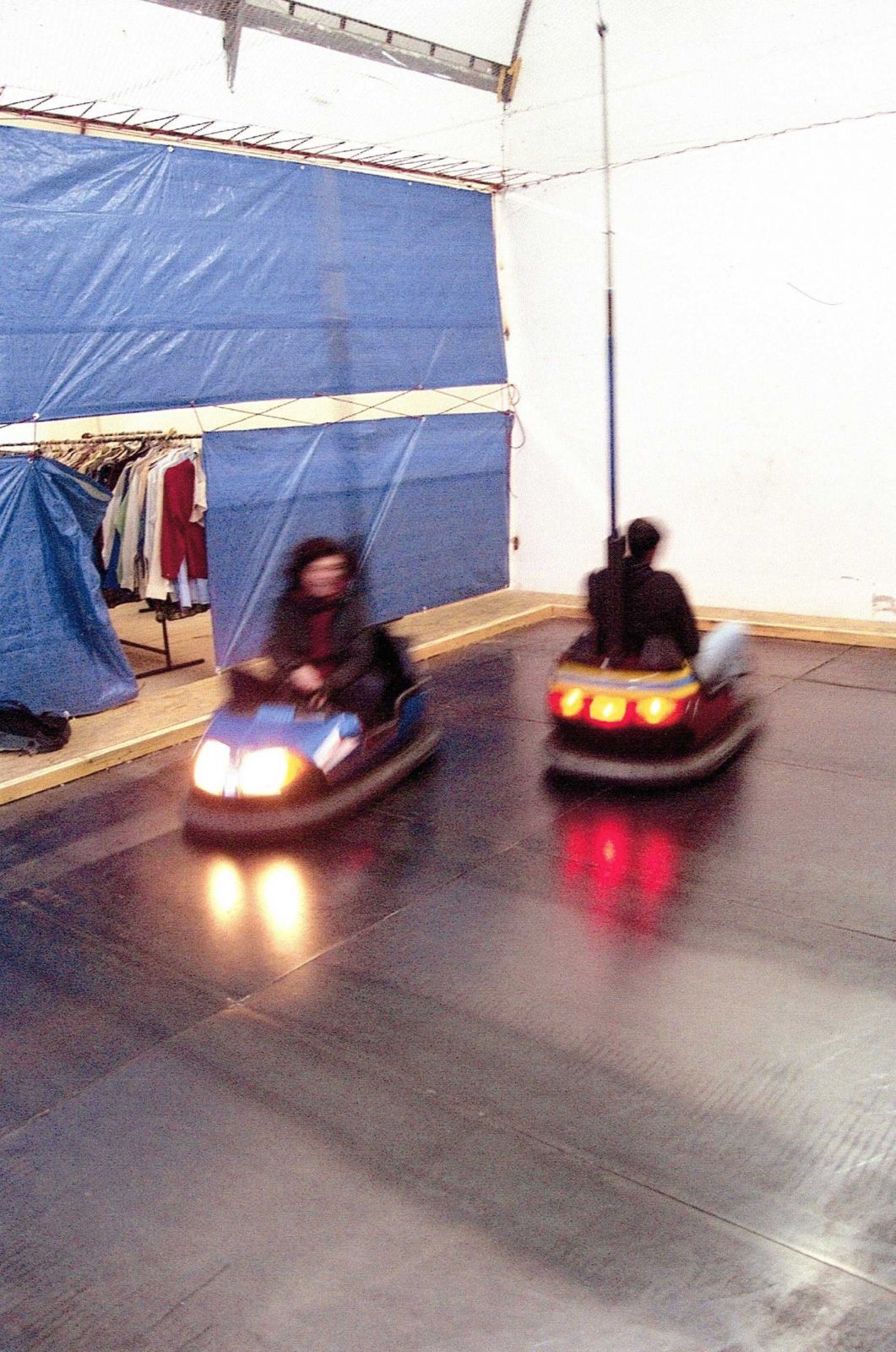 Trois espaces sont à découvrir. Ils sont reliés par des passerelles. Sujets faisant partie des œuvres précédentes de Nicolas Herubel avec les tables d'orientation, les ponts, les mains courantes. La première passerelle arrête le corps pour saisir l'espace. Un jeu ? Un divertissement ?… Une piste d'autos tamponneuses est présente avec son sol en métal, son grillage et les éléments d'électrification. L'ensemble est en cours de montage ou de démontage. L'échelle humaine resserre ce lieu et force le spectateur aux jeux d'esquives, de heurts, de face à face ou d'affrontements avec l'autre. Une boule à facettes dans son lent mouvement circulaire renvoie avec humour la misère de la possible fête.