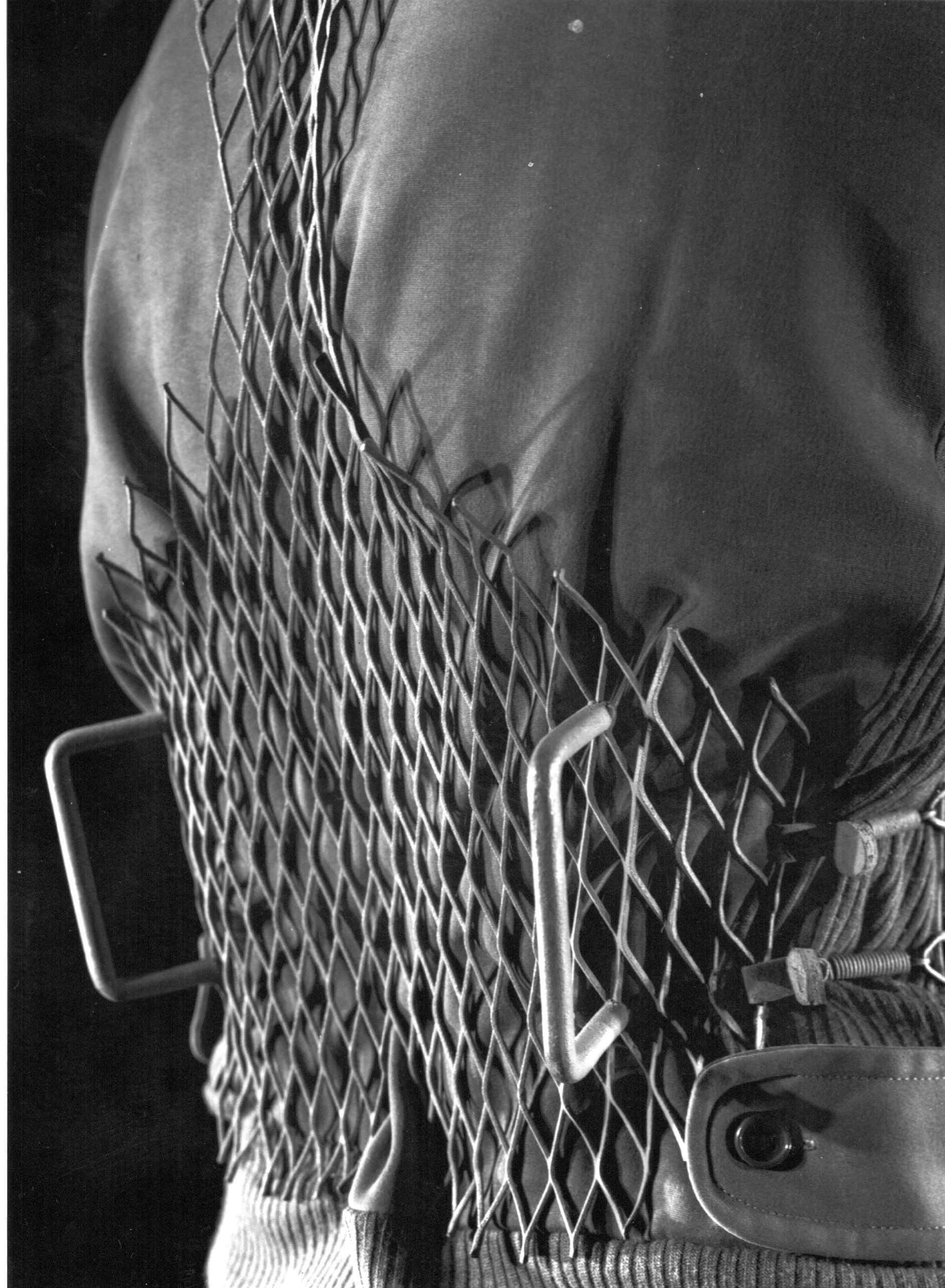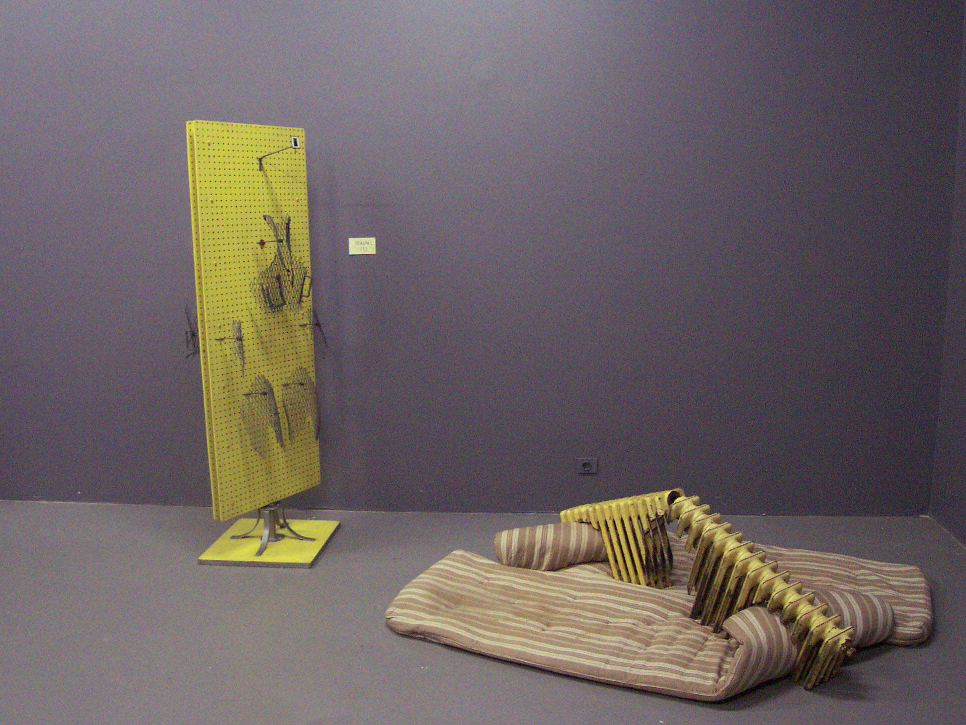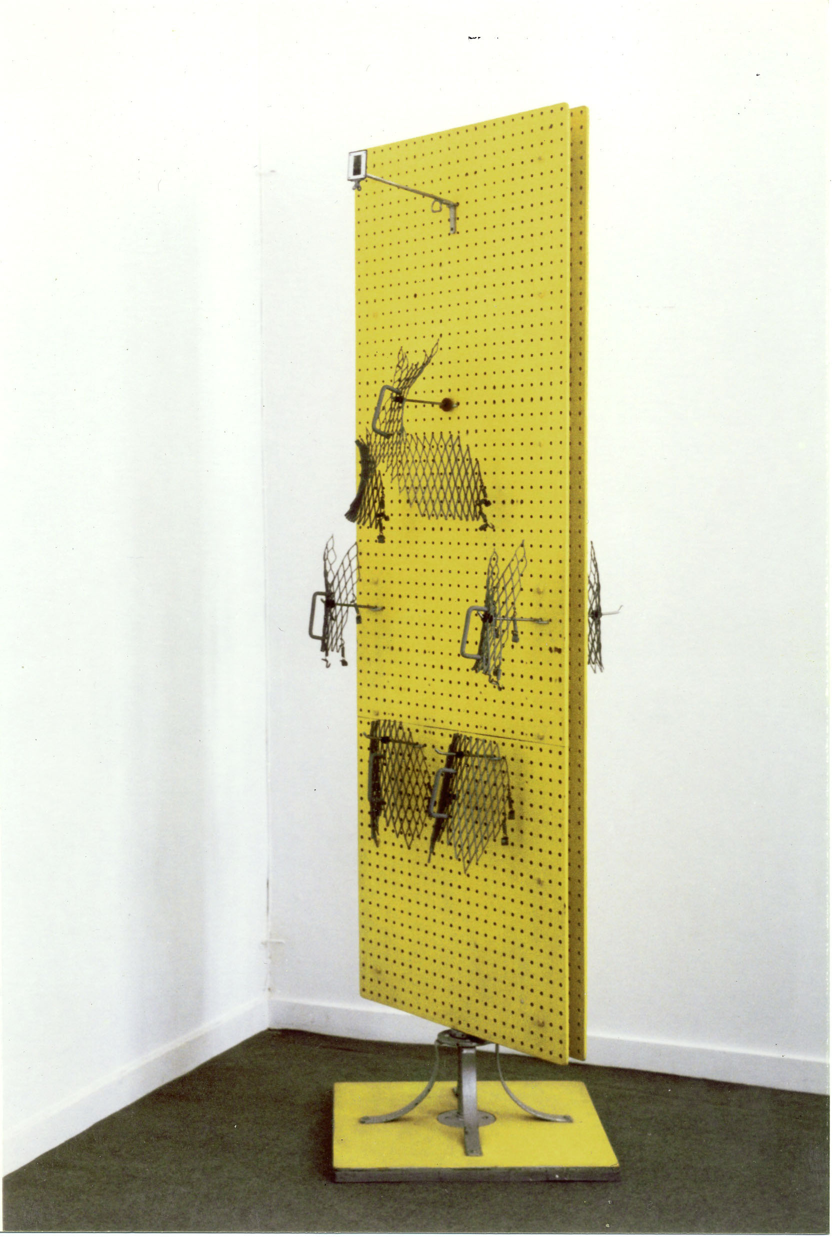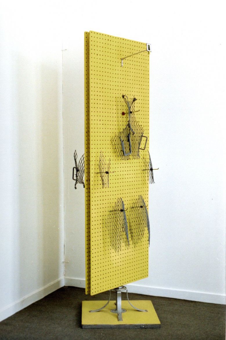 métal déployé, carte d’identité (82), ressorts, sangles coton présentoir en acier et isorel perforé (97)