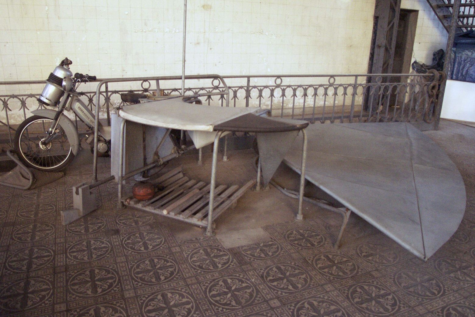La série de « machines » qu'il a réalisée décline une « grammaire » mécanique du corps. Doubles de son corps, ses machines sont des formes nécessaires car complètement adéquates aux fonctions qui les génèrent. Elles cristallisent de l'universel dans un objet totalement singulier. Cependant, par un effet d'association et de réminiscence, elles nous renvoient l'écho des fantasmes productivistes et tayloristes qui hantent certaines rêveries technologiques.