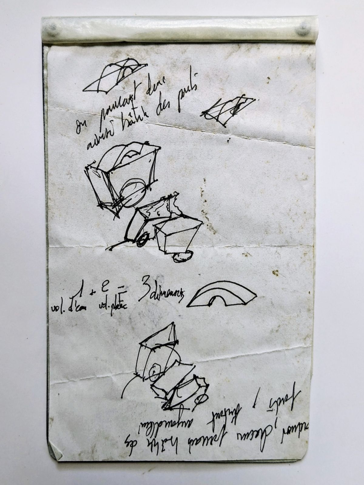 Dessin sur papier de fortune pour Permis de construire n°1 Deux pour un, 1992