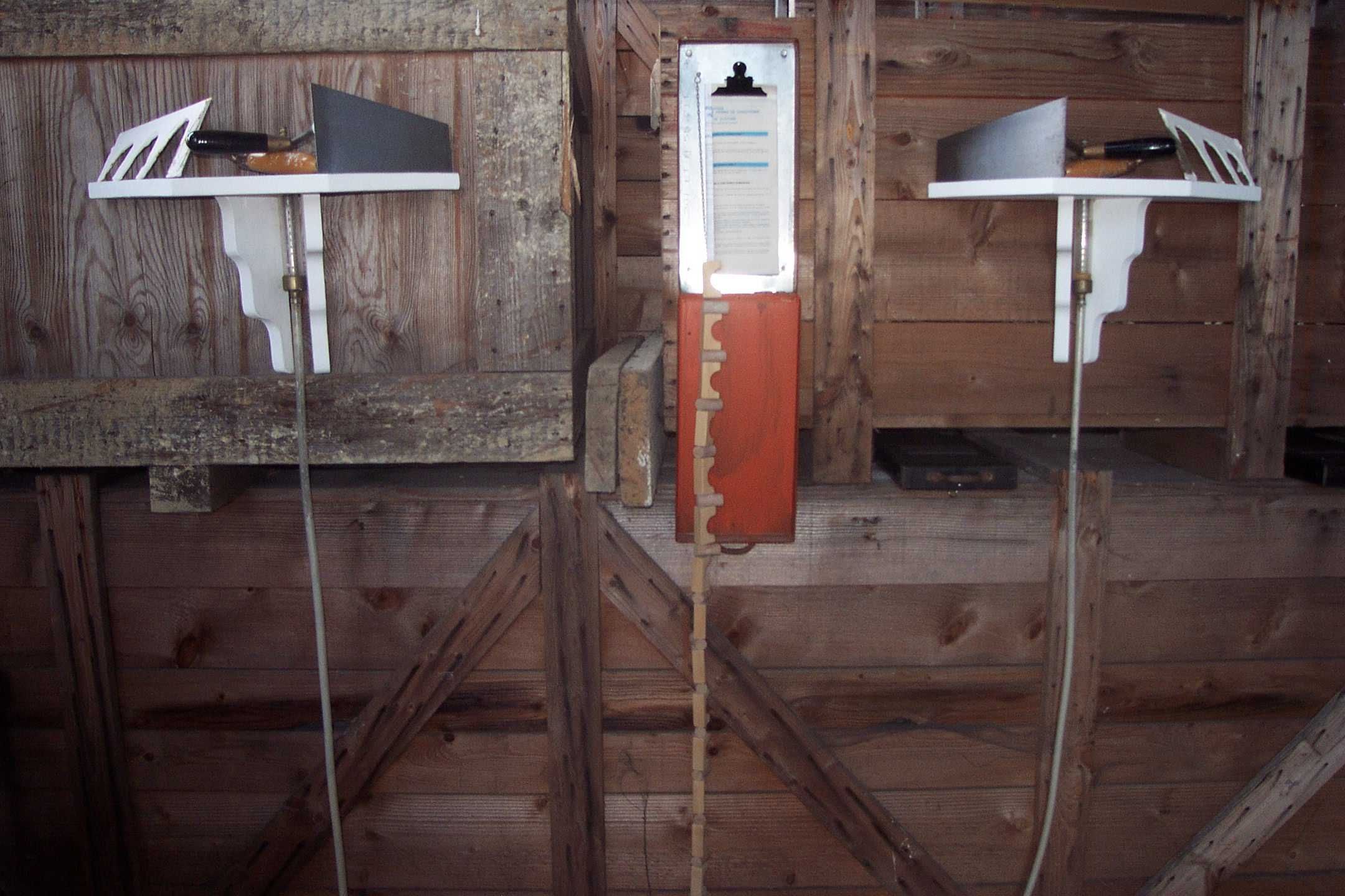 2 étagères bois, 4 truelles d'angle, niveau de maçon