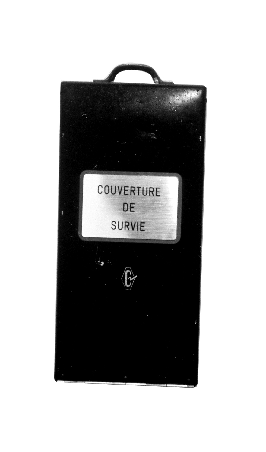 boite métallique (fixation murale), 2 formulaires de permis de construire, 2 couvertures de survie boites : e.:0,08m ; L:0,45m ; l:0,22m